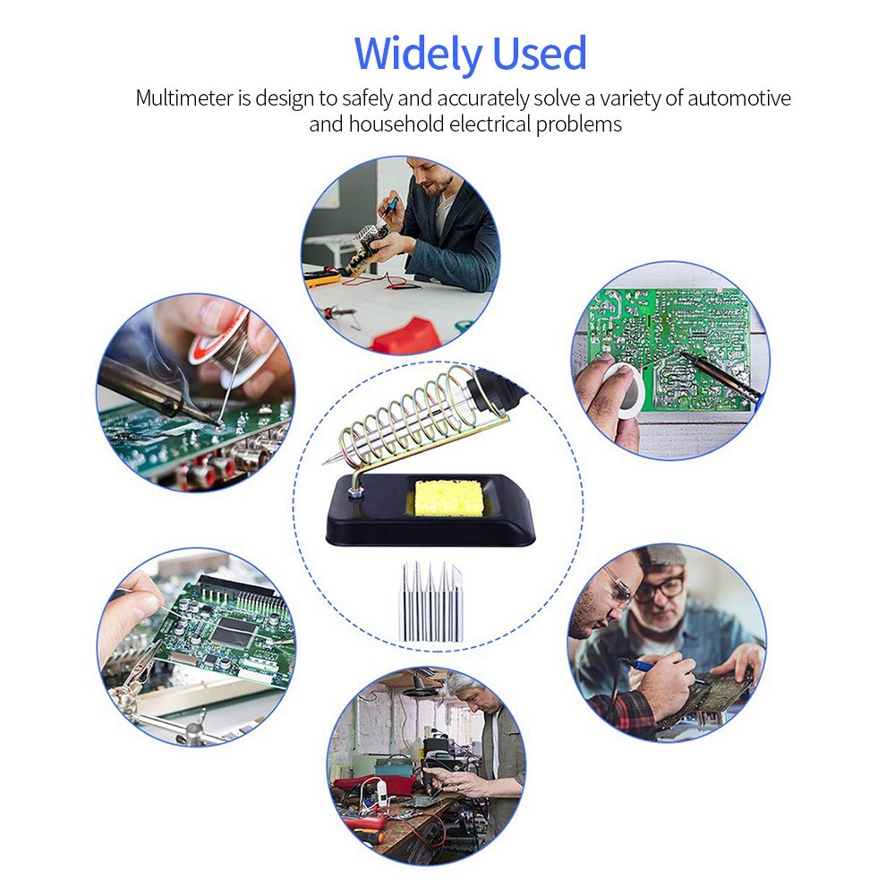 The Soldering iron kit can meet all your soldering work needs with all fitting included,soldering iron, digital multimeter, desoldering pump,tweezers, tin wire, soldering stand, iron tip, pliers, mini wire stripper, making your soldering more easy and comfortable.