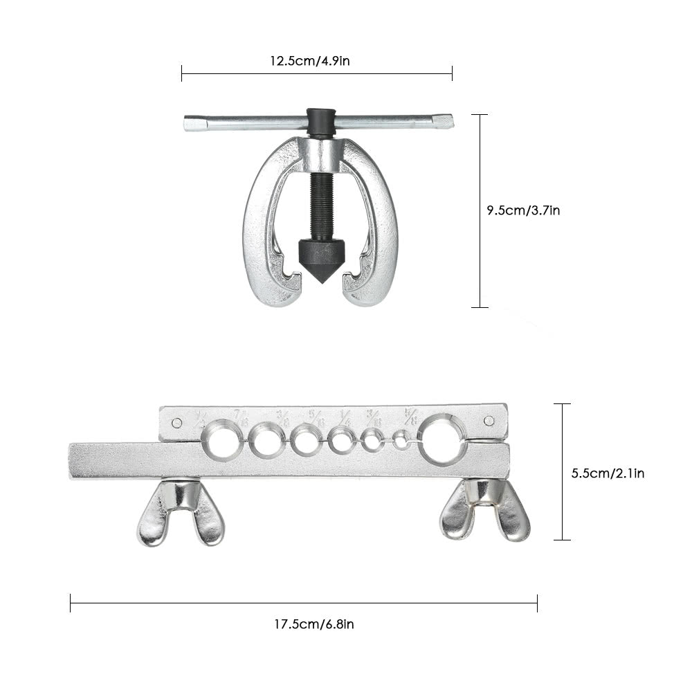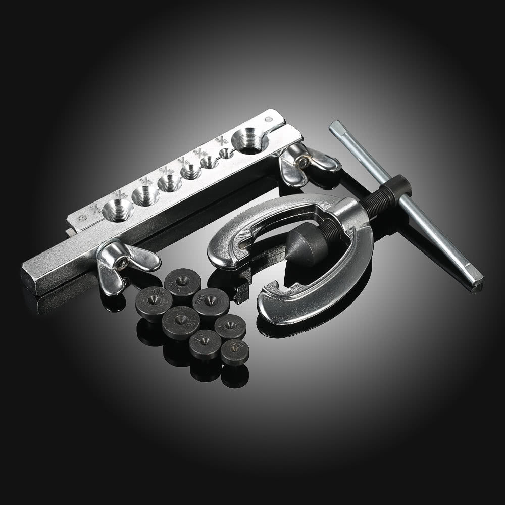 This flaring tool kit is a perfect tool for pipe flaring, and it can be used to make single or double flares on copper, brass and thin walled aluminum tubes.