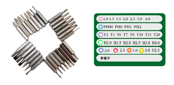 Torx: T4, T5, T6, T7, T8, T10, T15, T20