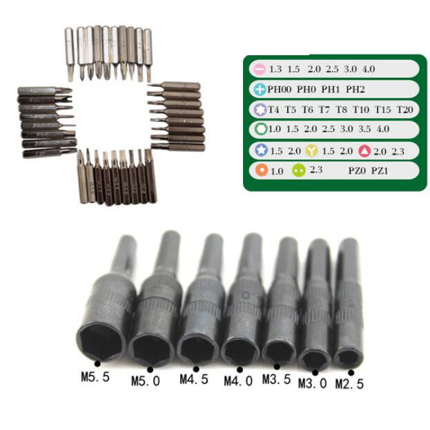 Torx: T4, T5, T6, T7, T8, T10, T15, T20