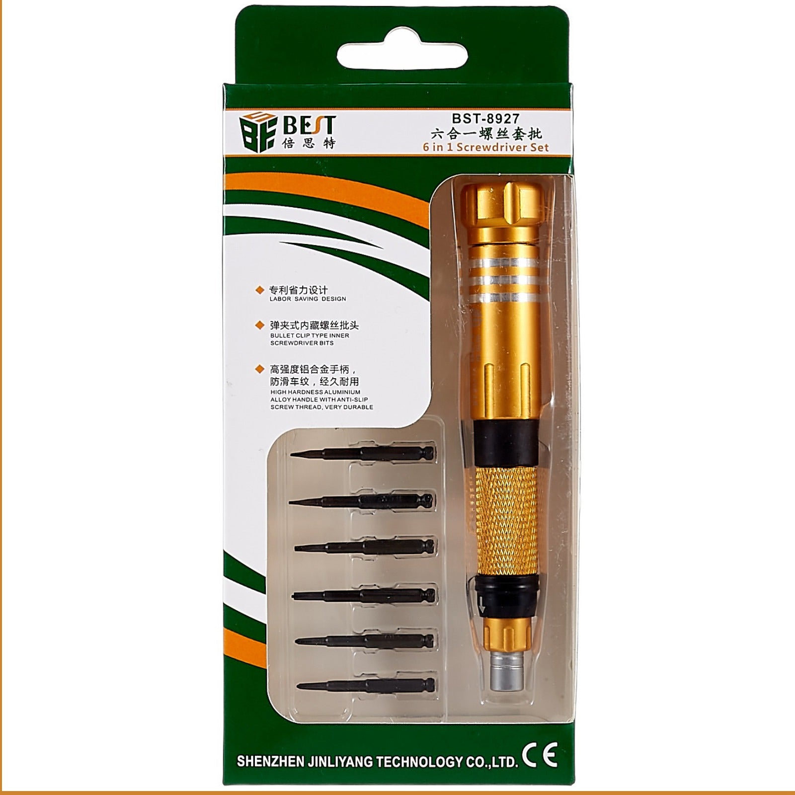 Uniqkart BST-8927 6 in 1 Screwdriver Set Handheld Anti-slip Screwdriver Repair Tool Kit with Bits