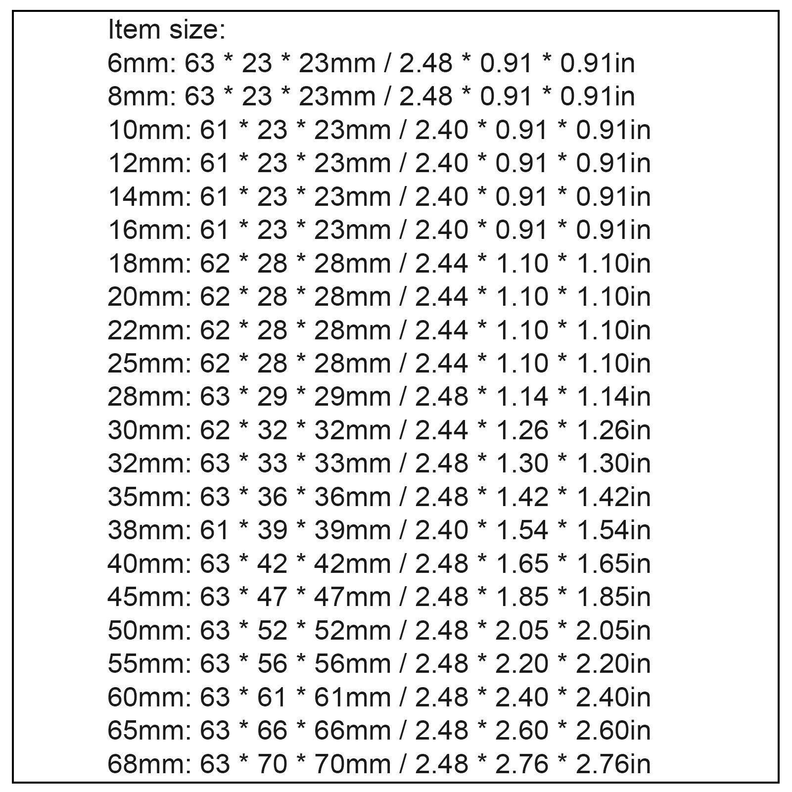 - 22 kinds of specifications available, you can choose 6mm, 8mm, 10mm, 12mm, 14mm, 16mm, 18mm, 20mm, 22mm, 25mm, 28mm, 30mm, 32mm, 35mm, 38mm, 40mm, 45mm, 50mm, 55mm, 60mm according to your demands