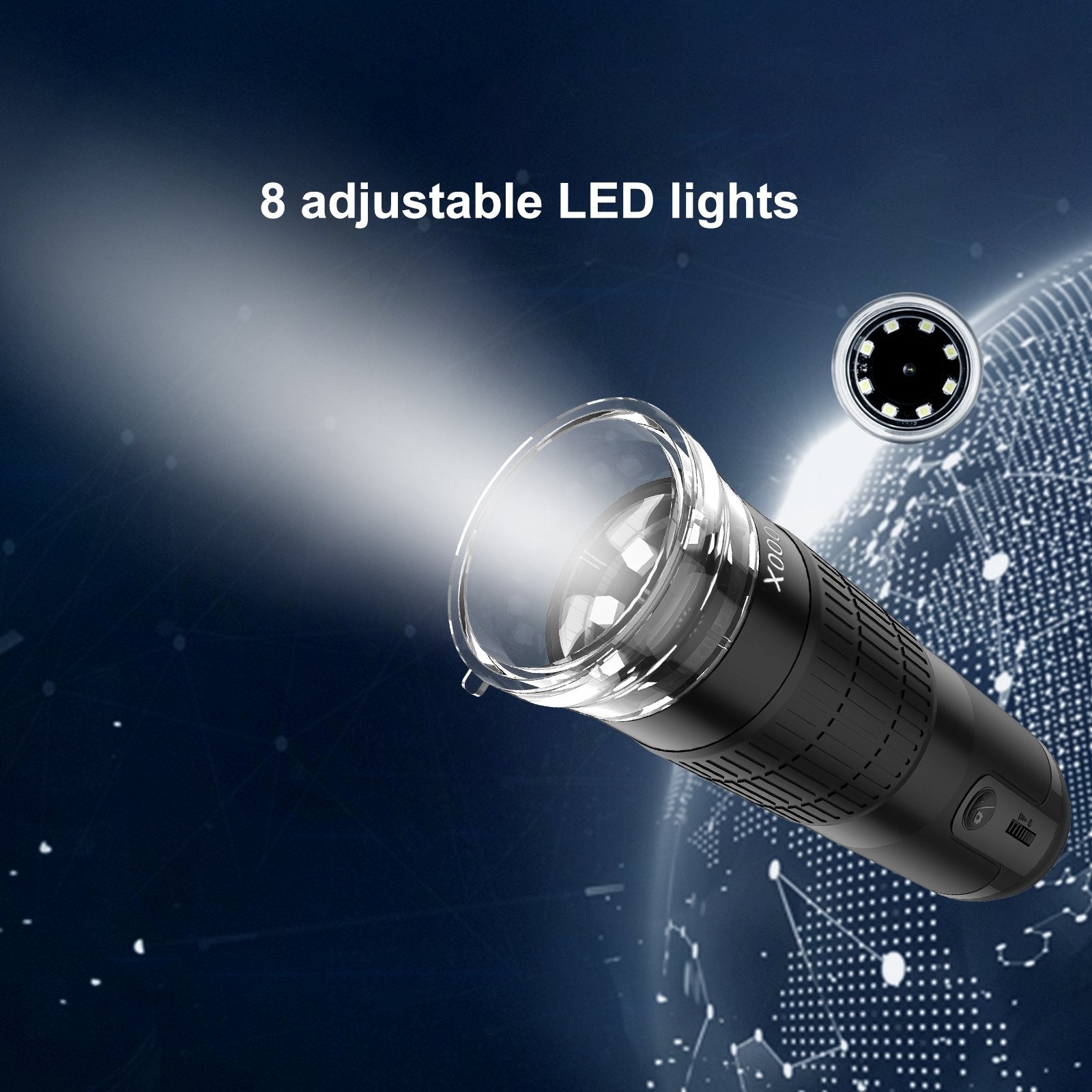 - 8 LEDs form a light strip, which can be adjusted for brightness