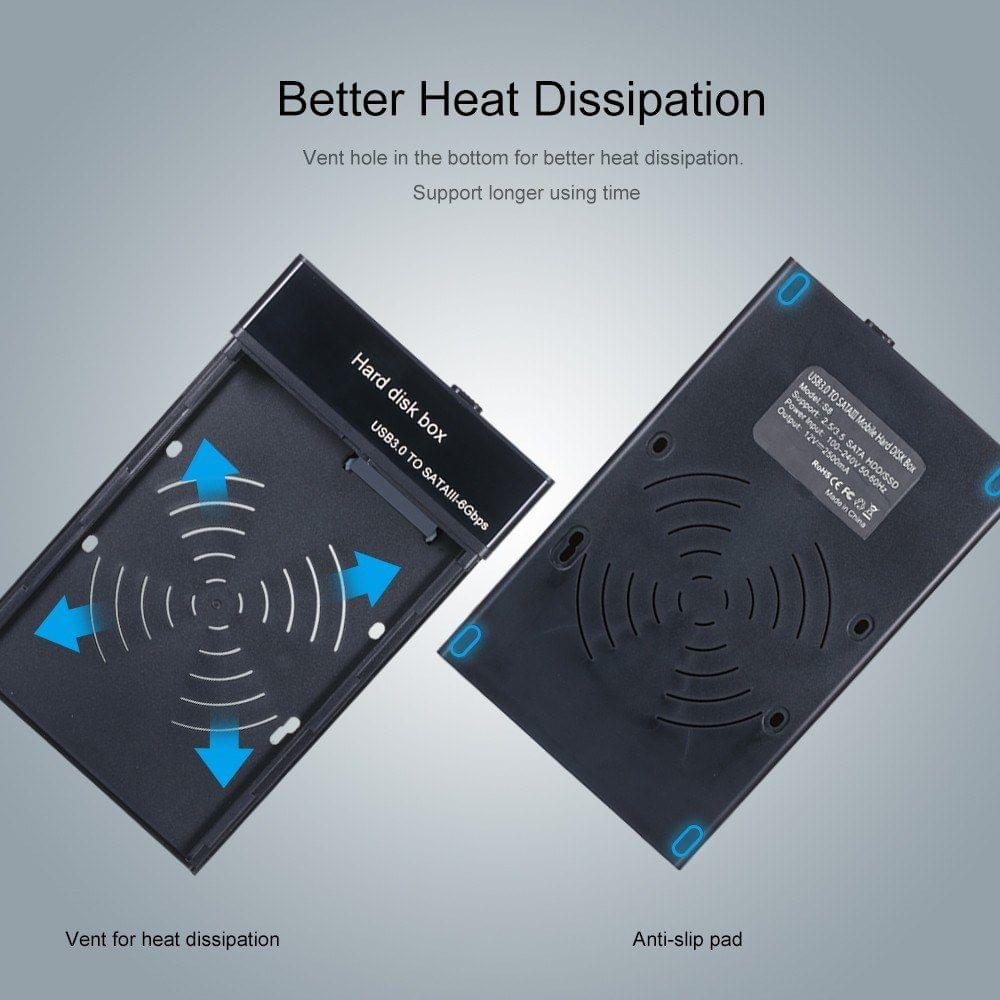 description":"This external hard drive enclosure can easily connect 2.5/3.5 inch hard drive to your PC, laptop and other devices to transfer data quickly. Features: USB3.0 6GB transfer rate, and support UASP new protocol and 10TB large capacity storage. Plug and play with tool-free installation. No tool is required, 3 seconds disassembly. Built-in high-power wide-voltage power supply, support SATA interface 2.5/3.5in mechanical hard disk and SSD hard disk, up to 10TB hard disk. Intelligent chip reduces hard disk loss, and automatically wake up when reading and writing data. Support Windows, Mac OS, Linux system computers and smart TVs, routers, PS4,HD players, etc. Specification: Plug type: US/EU/UK (optional) Power: Input 100-240V50/60Hz, output DC12V2.5A Item size: 11.5 * 8.5 * 3.5cm / 4.53 * 3.35 * 1.38in(L * W * H) Item weight: Approx.237g / 8.36oz Package size: 21.5 * 18.7 * 5cm / 8.46 * 7.36 * 1.97in(L * W * H) Package weight: 406g / 14.32oz Package list: 1 * USB3.0 HDD enclosure 1 * USB cable 1 * User manual 1 * Screw driver