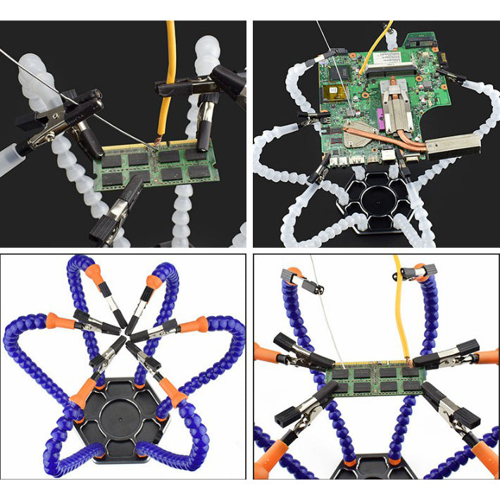 Helping Hands Third Hand Soldering Tool 6 Flexible Arms Six Arm Soldering Station With Swiveling Alligator Clip for RC Drone - Blue