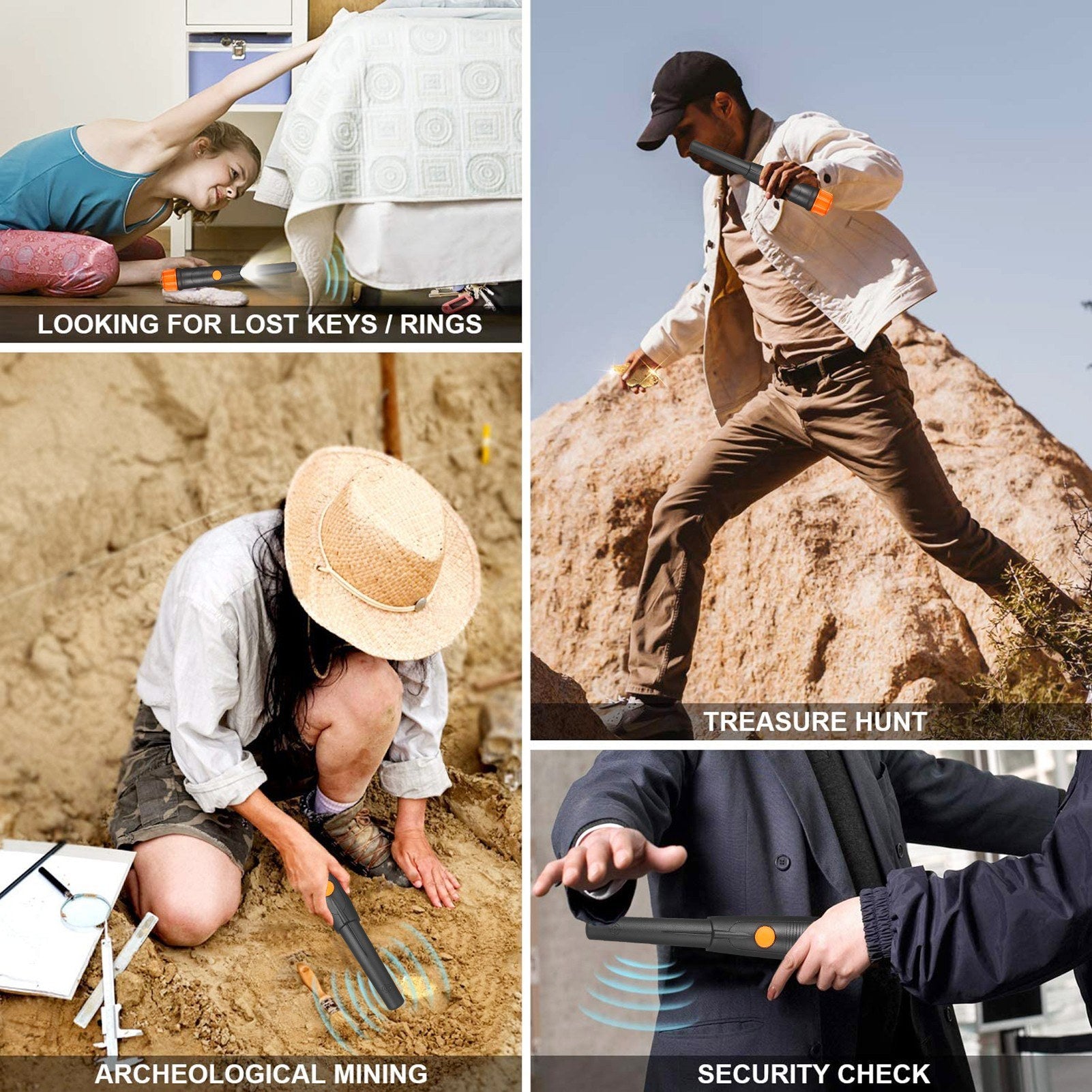 Handheld metal detector designed to precisely pinpoint metallic(ferrous and non-ferrous) objects during treasure discovery. It is intended for use in-conjunction with a ground search metal detector to aid in the discovery of metallic targets. With a pinpointing tip and side-scan capability, it is very effective in detecting easily even the smallest of metallic objects.