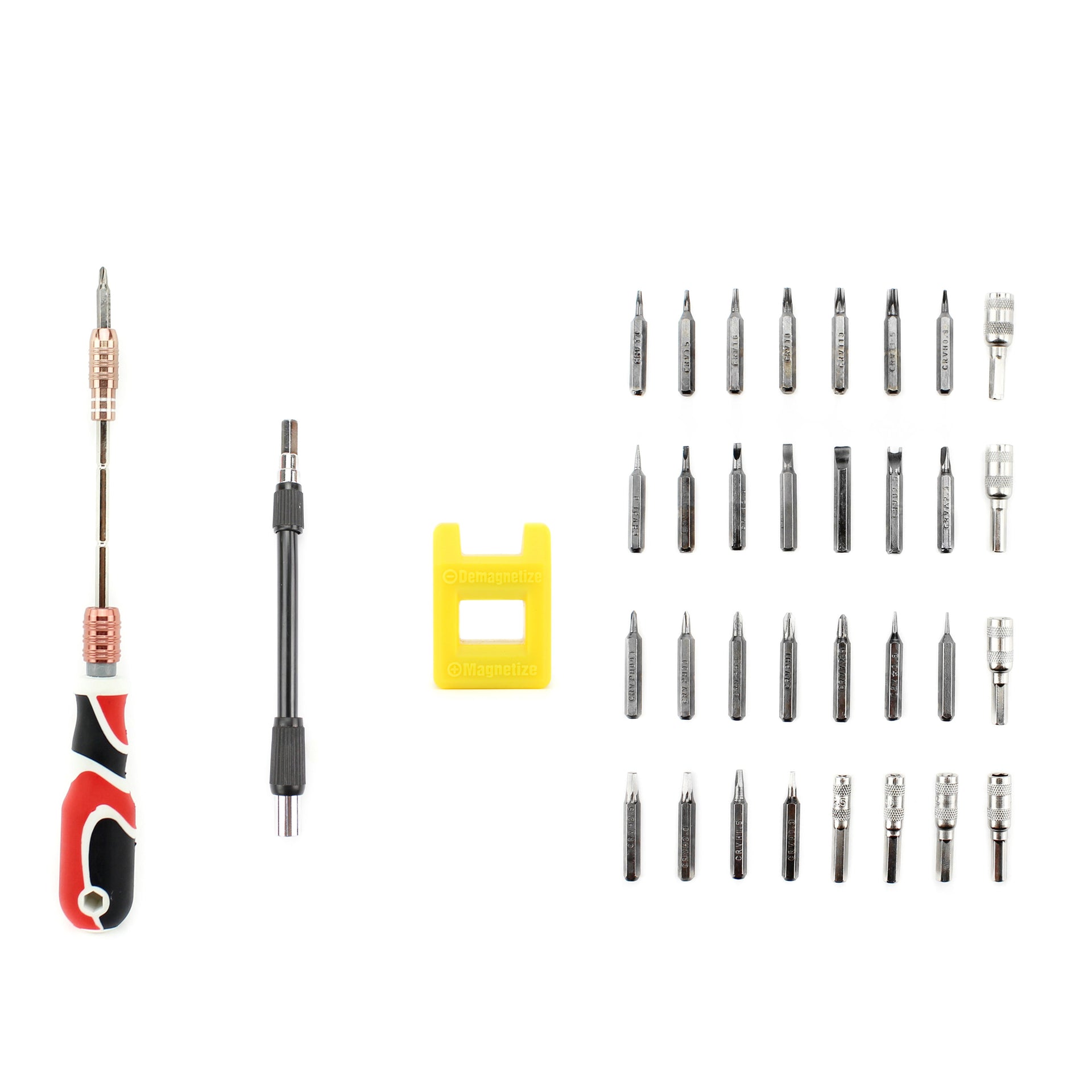 This 36-in-1 interchangeable screwdriver set is designed for repairing mobile phones, laptops and home appliances, etc. They are essential tools for family use. You can choose the suitable one freely.