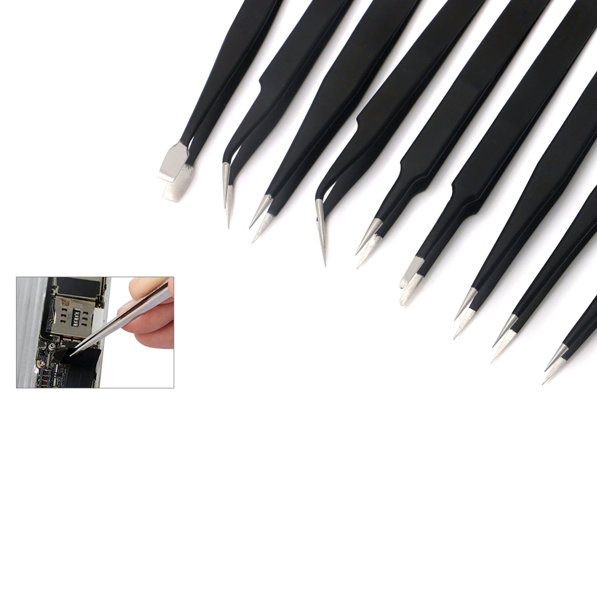 1 x JF-8142 Portable Professional 9-in-1 Anti-static Tweezers Set Kit