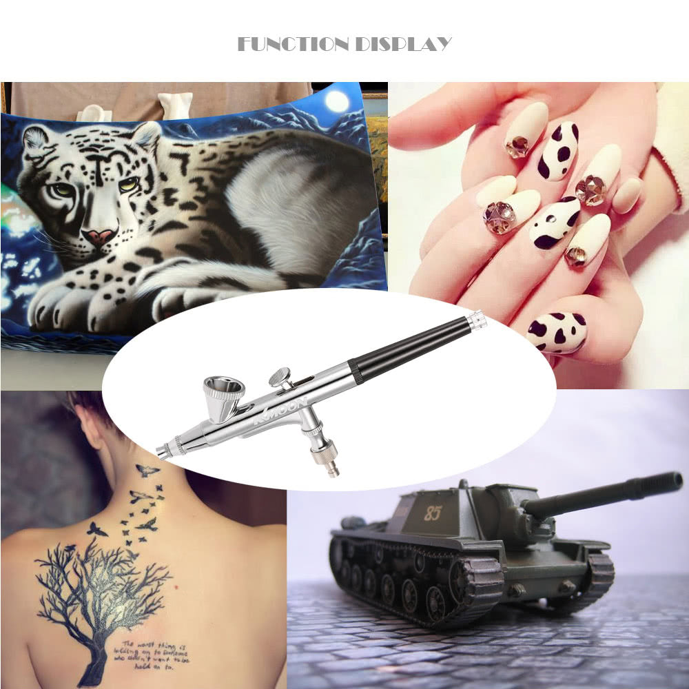 This professional airbrush is perfect for fine art, nail art, temporary tattoo, hobbies, etc. With a plastic dropper and a wrench, it is more practical.
