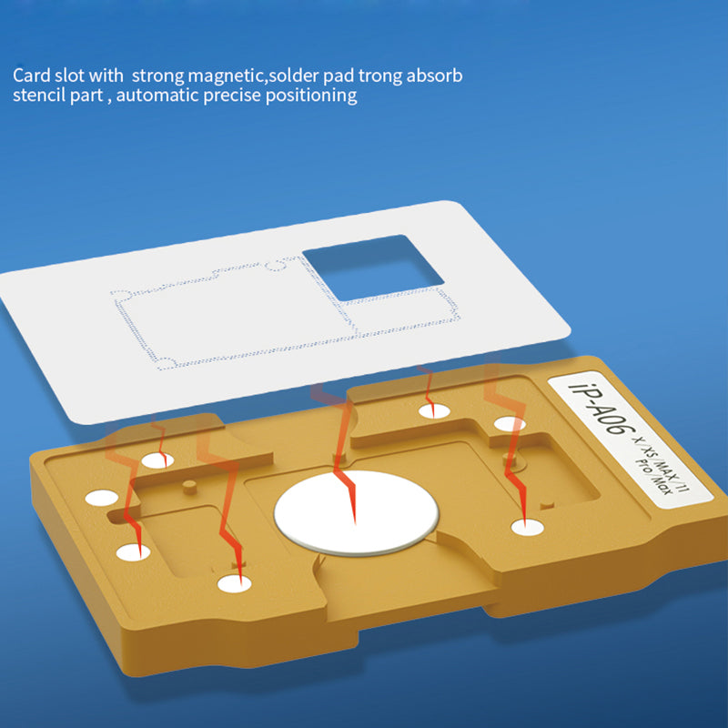 Card slot with strong magnetic, solder pad absorb stencil part, automatic precise positioning