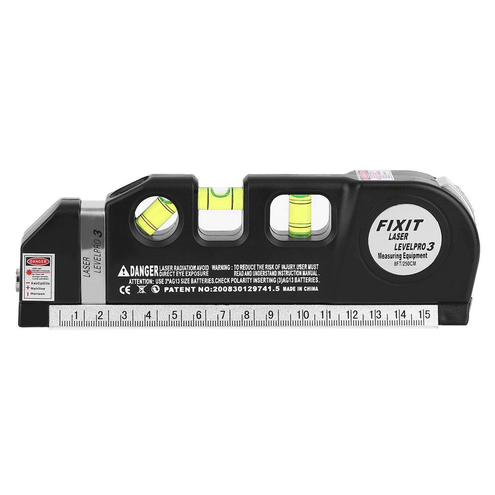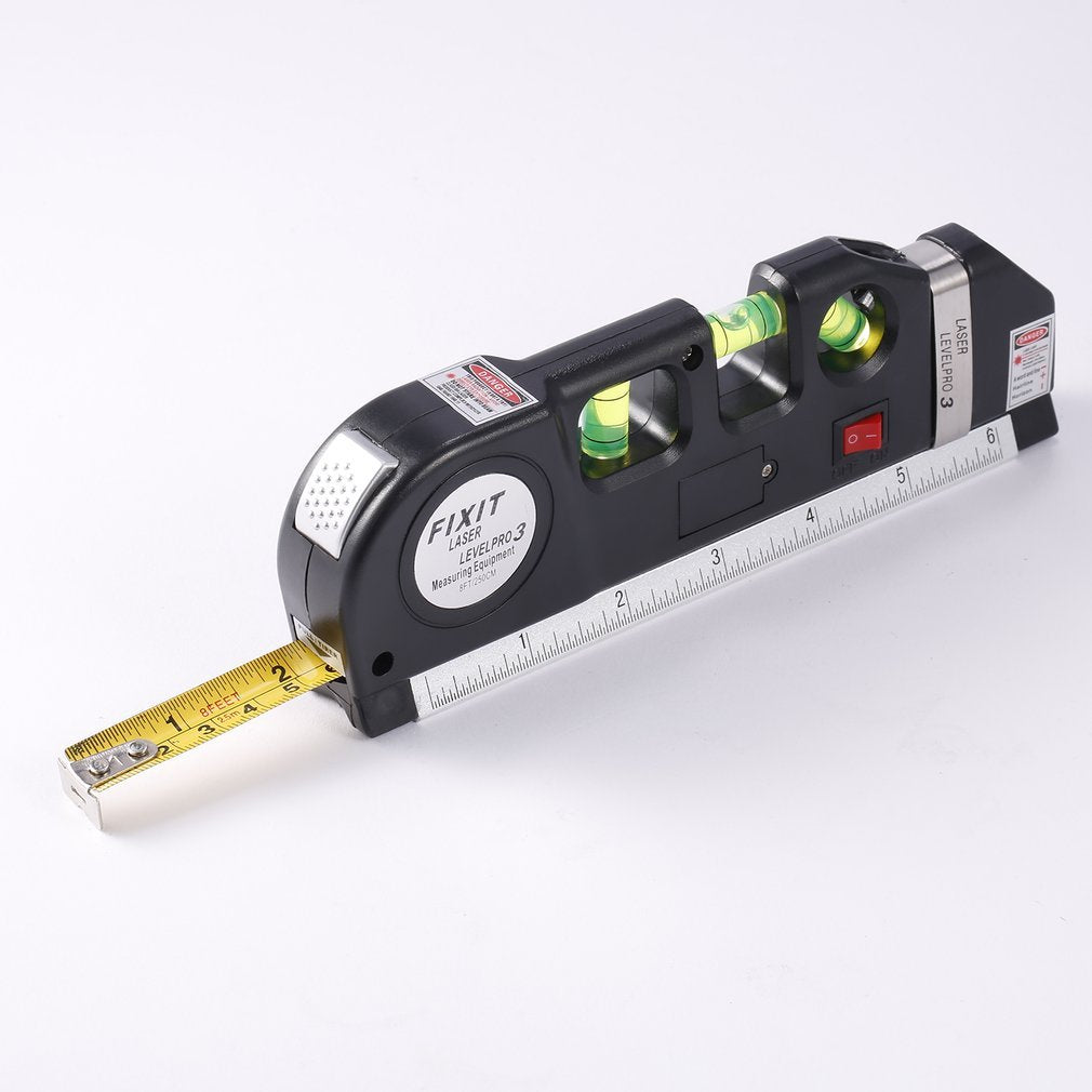 Combines a fine-tuned tape measure, a triple-positioned leveling bubble and a laser level to provide maximum results