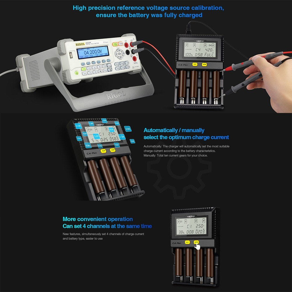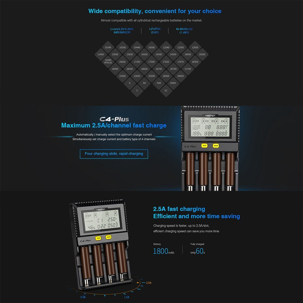 MIBOXER C4-plus Battery Charger Intelligent Universal 2.5A 4 Bay LCD Display - Black