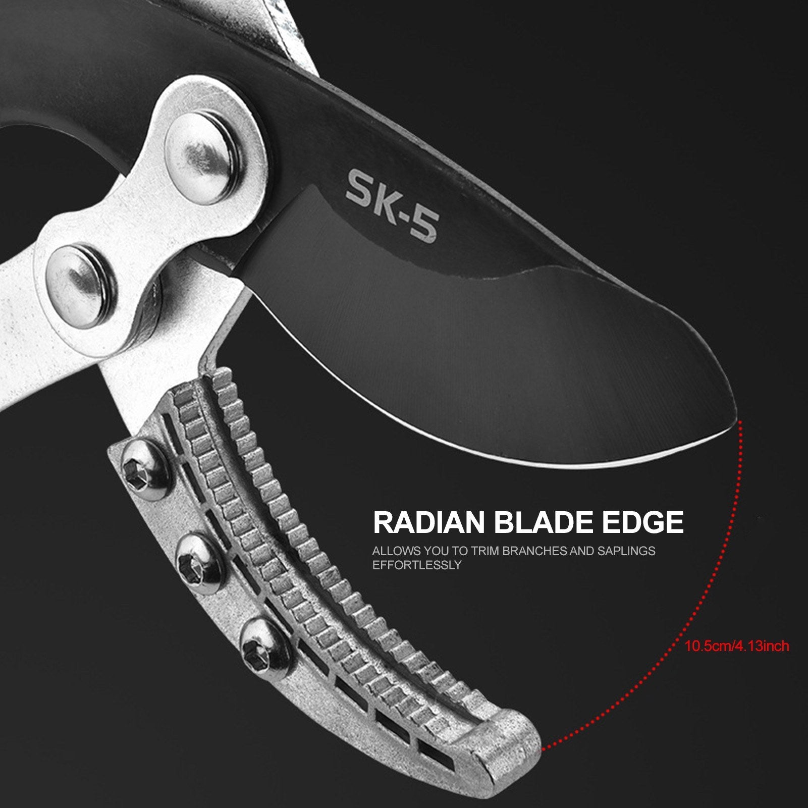 The tree pruner allows you to trim branches and saplings effortlessly and radian toothed blade edge design prevents them from accidentally falling off while cutting