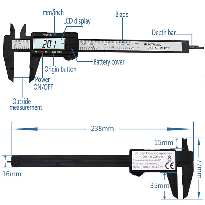 1 x QST EXPRESS Digital Electronic Carbon Fiber Vernier