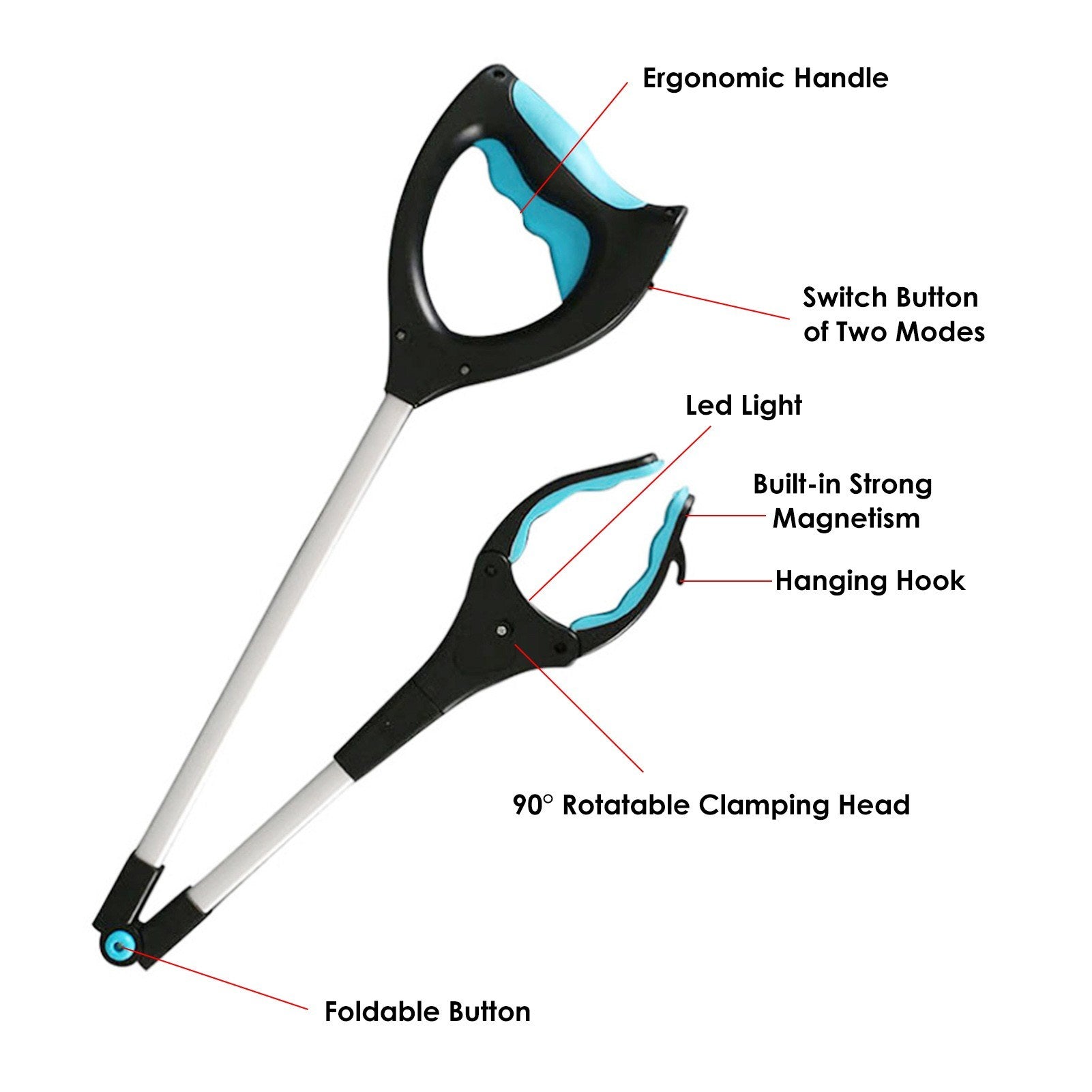 Strong Magnetism Pick Up Stick 90 Degrees Rotating Clamping Heads Gripping Foldable Grabber Tool