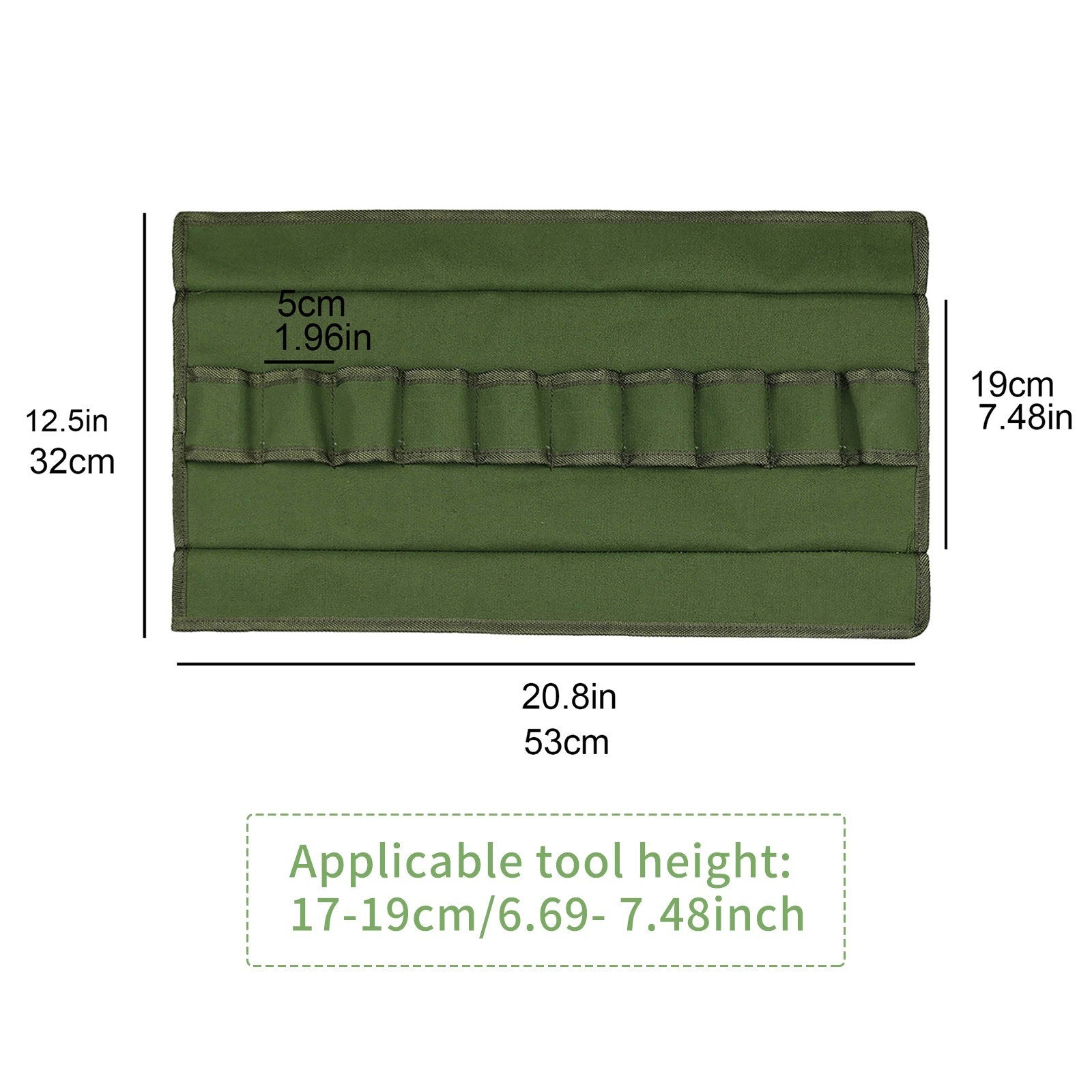 Tool Roll Bag Multi-Purpose Tool Roll Up Bag Canvas Garden Bag Organizer Bucket with 10 Pockets - Army Green