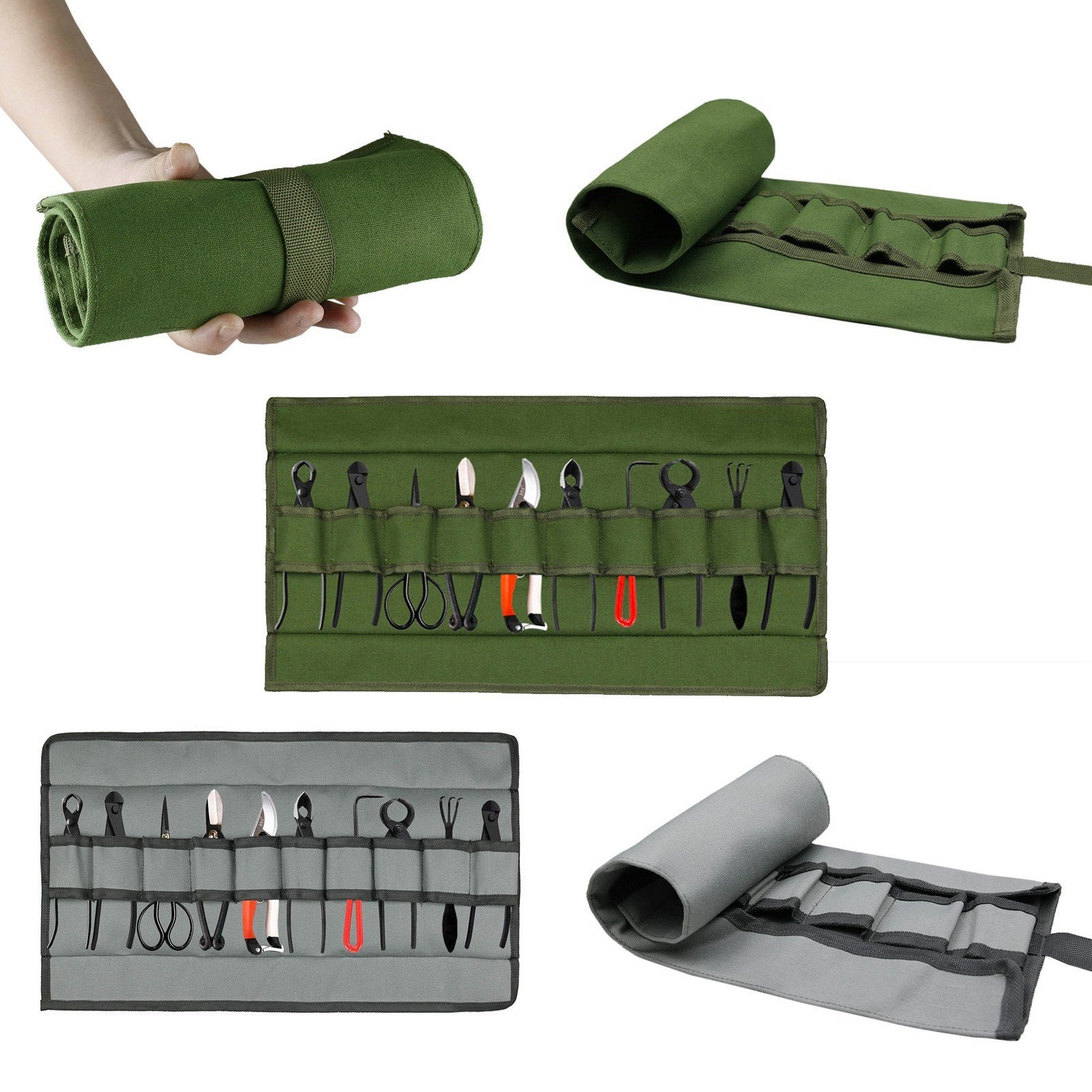 The canvas tool roll bag with 10 pockets is specially designed for woodworkers, machinists, gardeners, etc. Sturdy, durable but comfortable, provide protection and convenience at work.