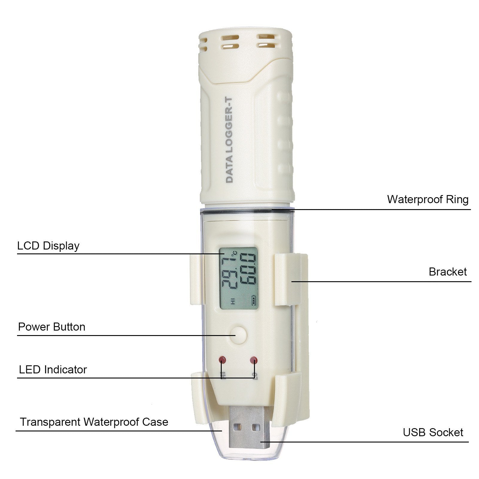 USB Temperature Data Logger Waterproof LCD Digital Temperature Data Recorder 61440 Memory Reusable Recorder Datalogger with PC Computer Software