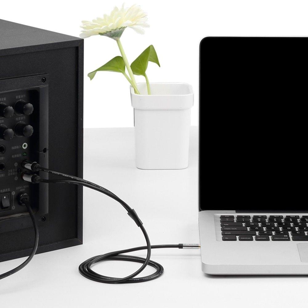 This RCA cable can connect a smartphone, tablet, or MP3 player via 3.5mm audio connector with a speaker, stereo receiver, or other RCA-enabled device via 2 RCA connectors.