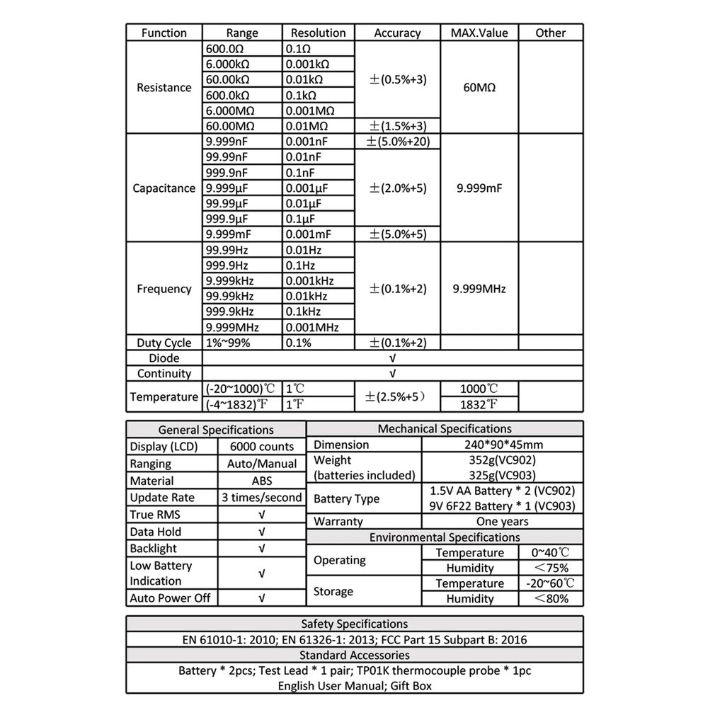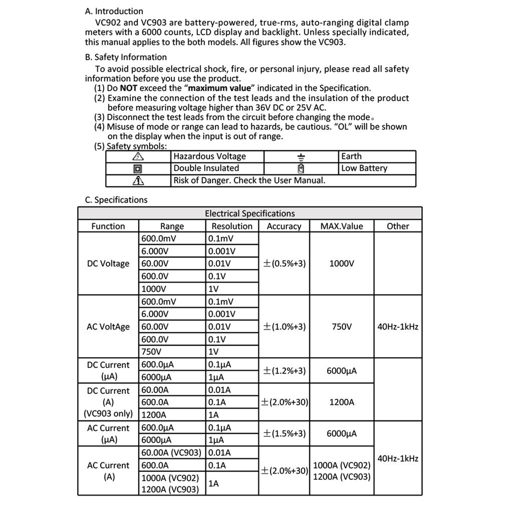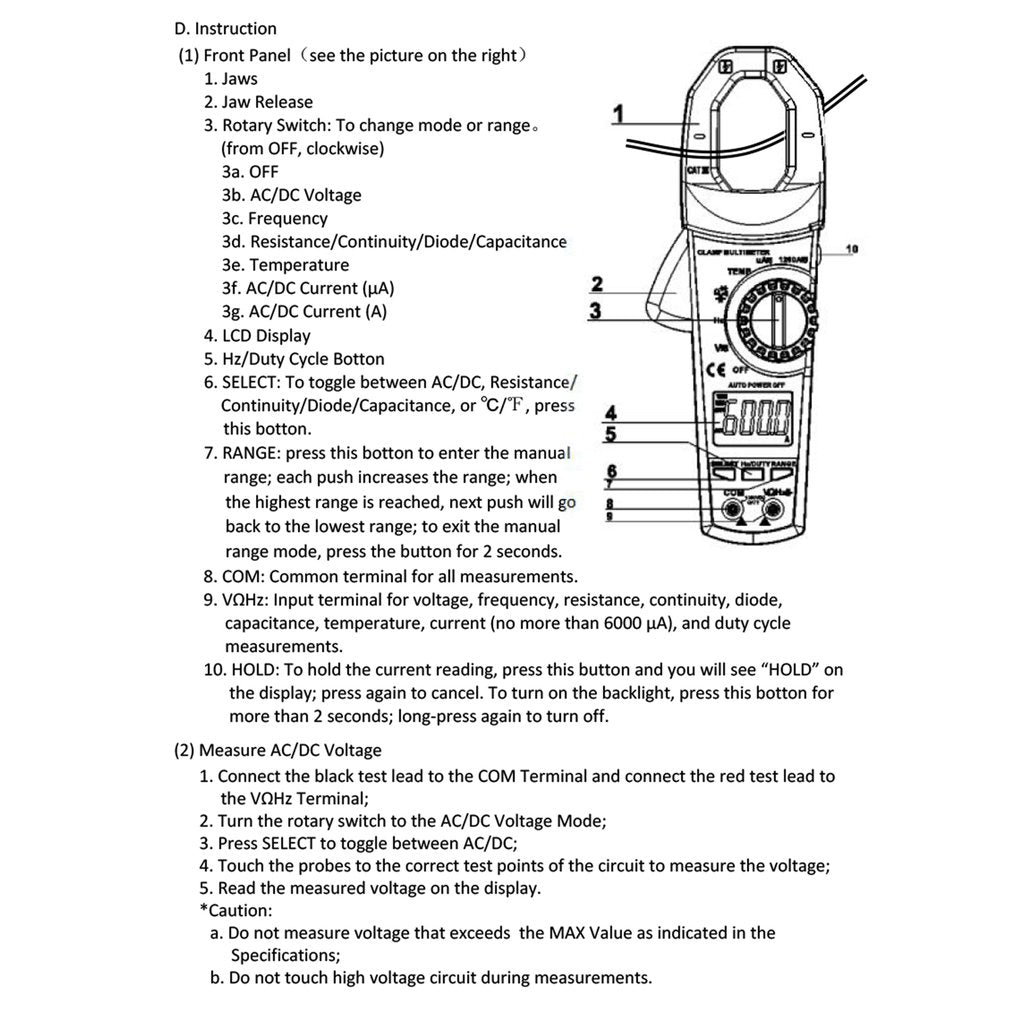 Measuring voltage range: 0.01V-1000 (V)