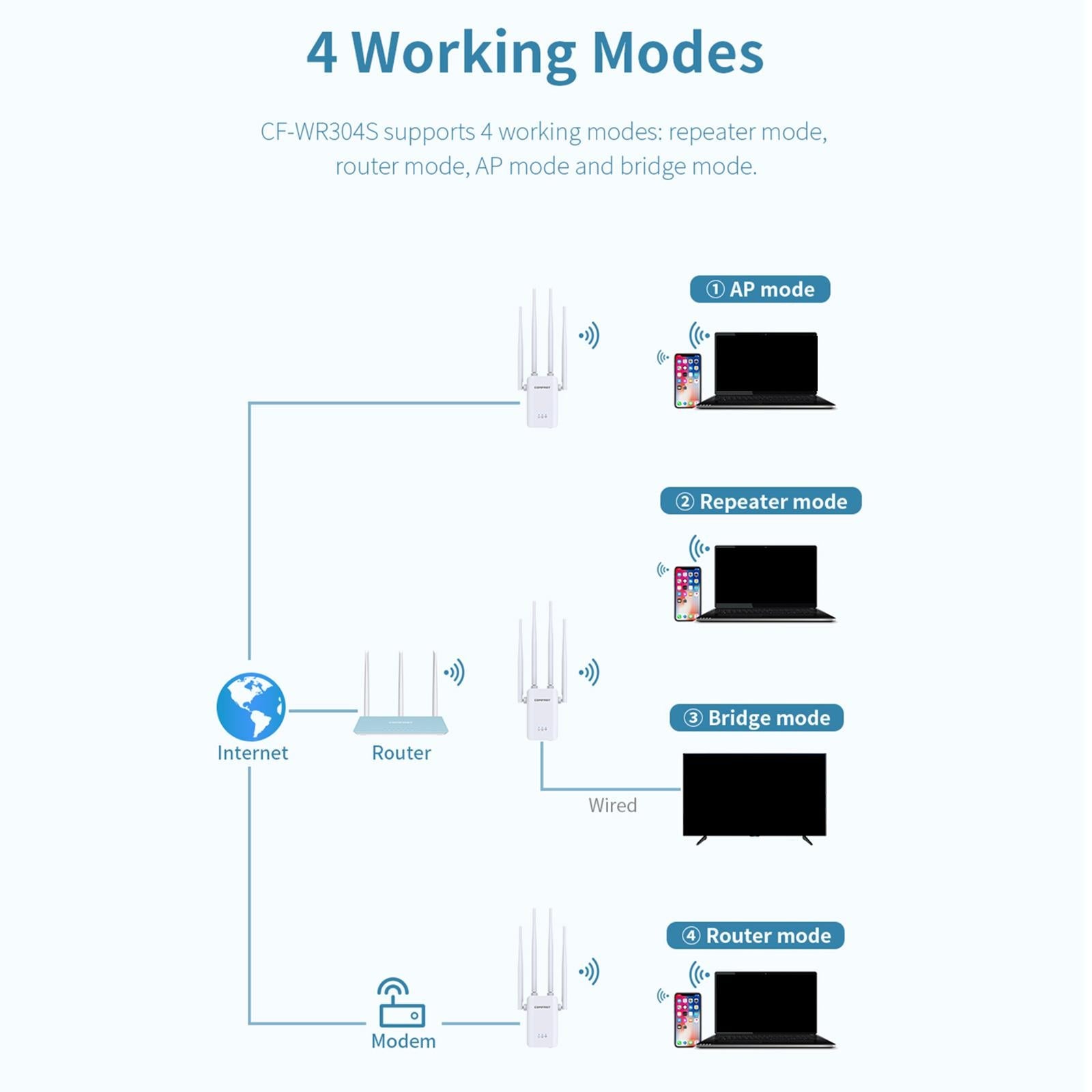 3 in 1 WiFi Range Extender Wall Plug 2.4GHz Single Band 300Mbps for Home