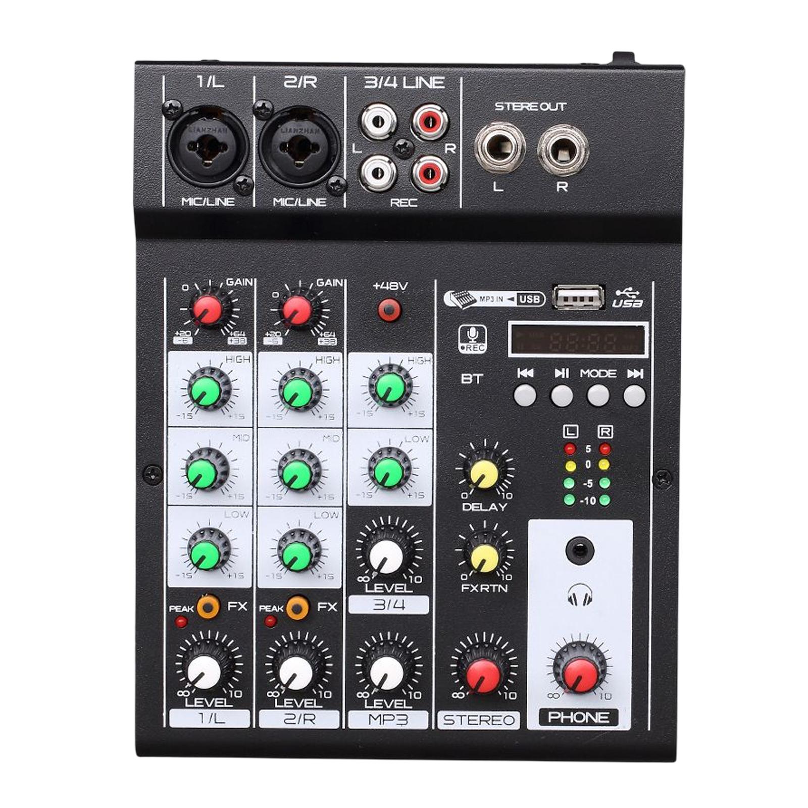Portable: 4 channel mixing console, compact size, lightweight and portable, easy to carry