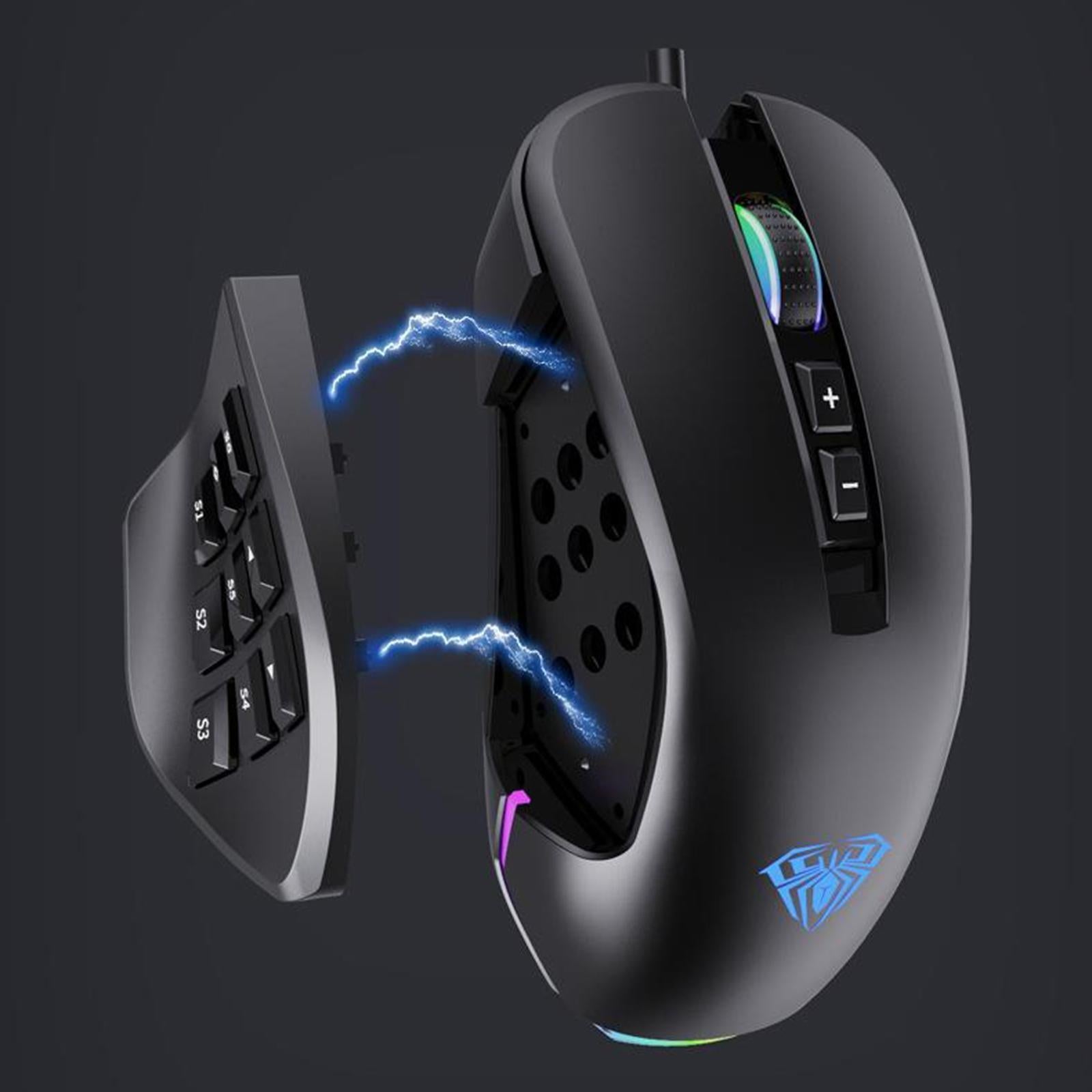 Breathing Light Ultralight Wired 14 Buttons Mice for Gamer Desktop Desktop black