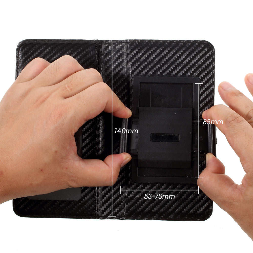 Carbon Fiber Universal Slide Up Leather Wallet Case for iPhone SE (2nd Generation) /8 /7 /6s /6, Width: 53- 70mm - Black