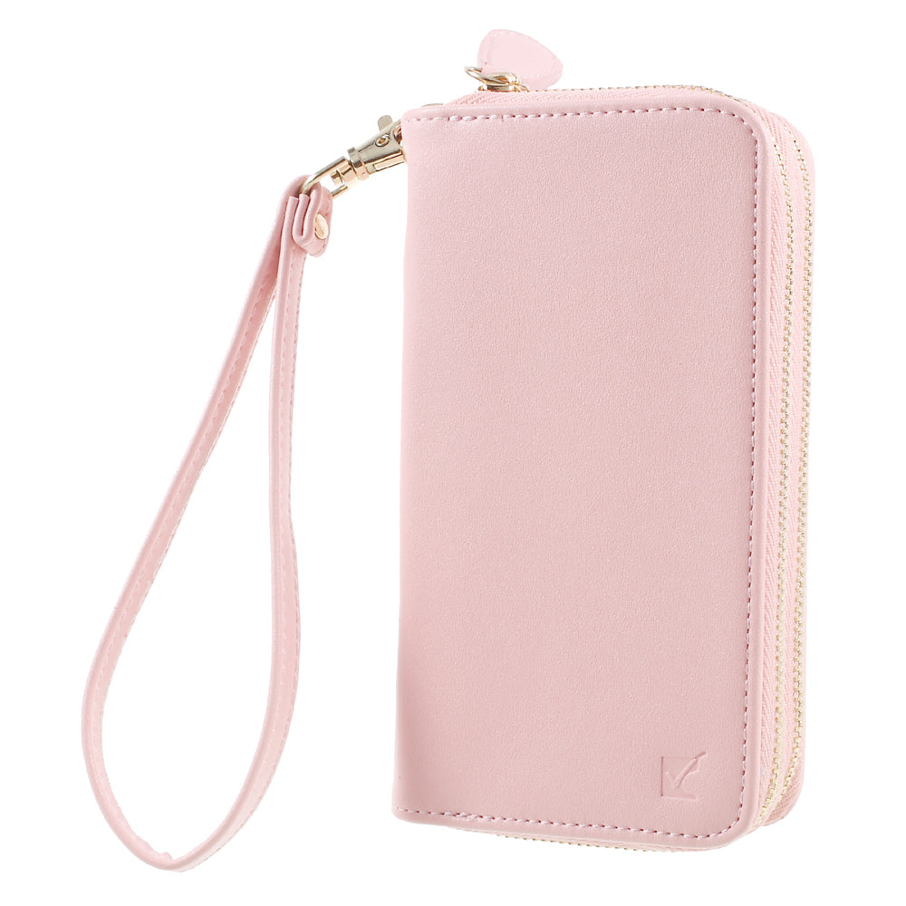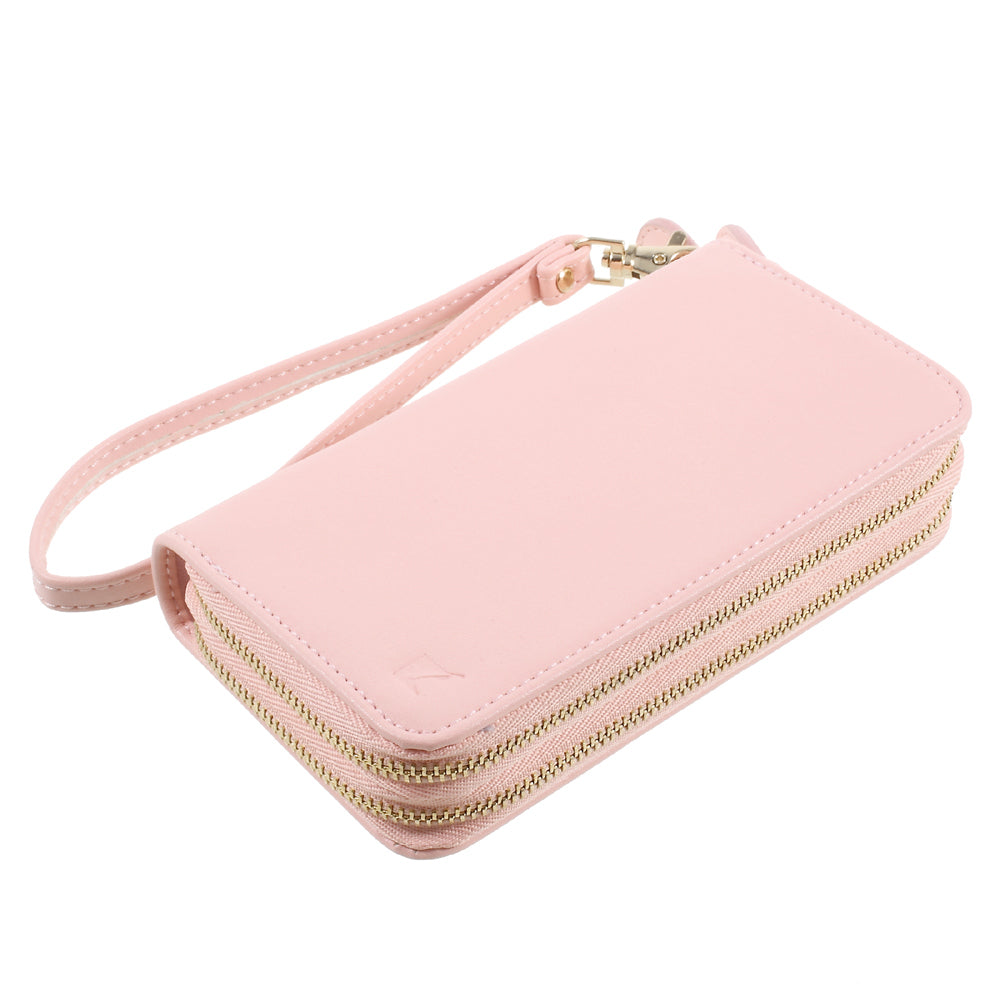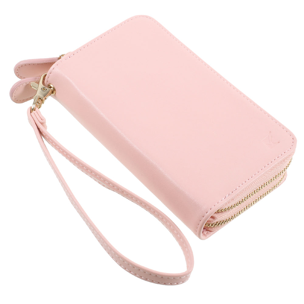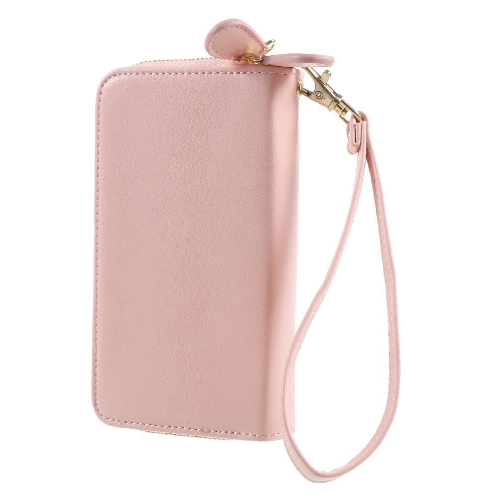Uniqkart for iPhone 6 /6s /7 Universal Zipper Wallet Leather Cover with Strap - Smooth Surface / Pink