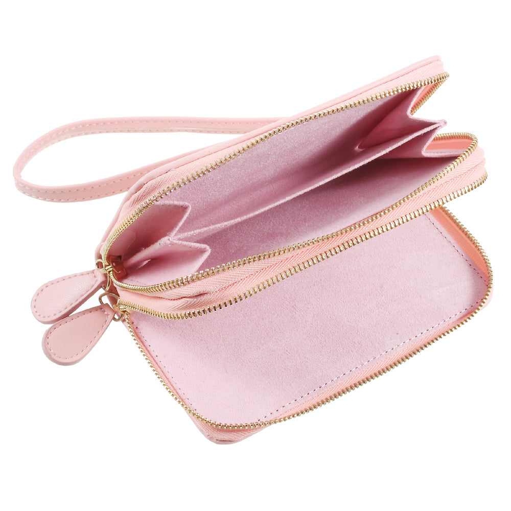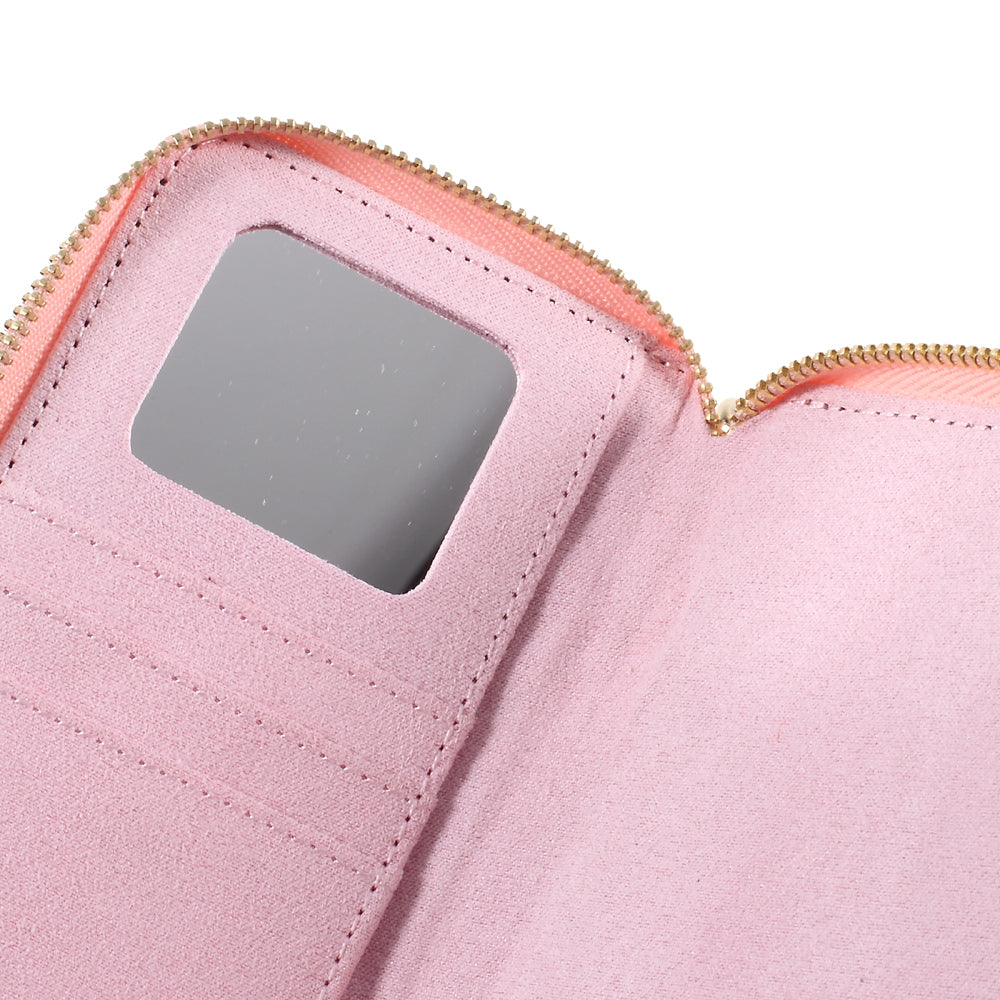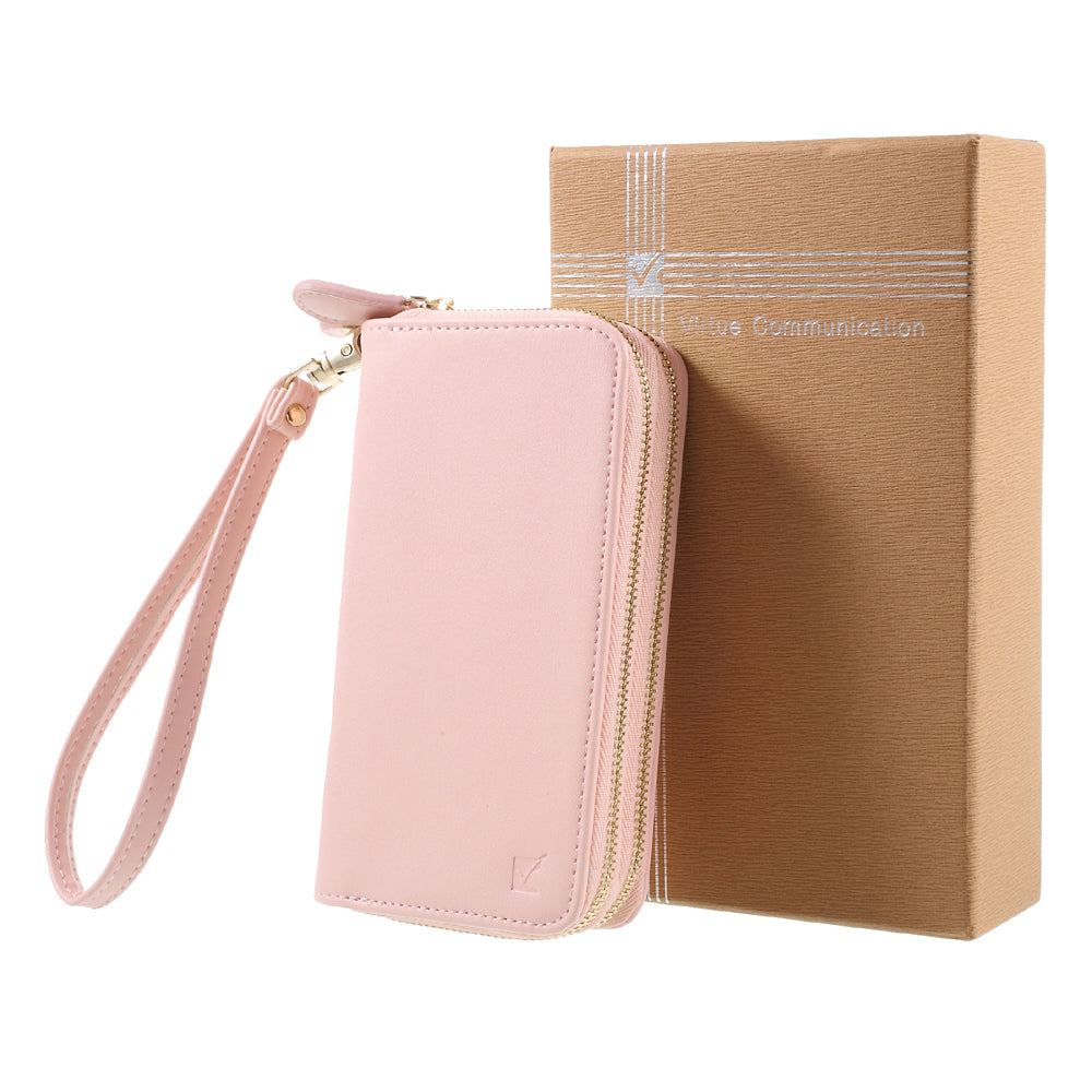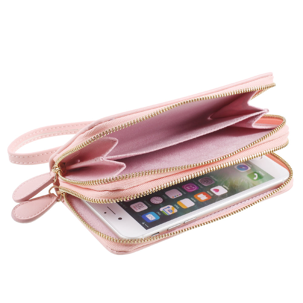 Uniqkart for iPhone 6 /6s /7 Universal Zipper Wallet Leather Cover with Strap - Smooth Surface / Pink