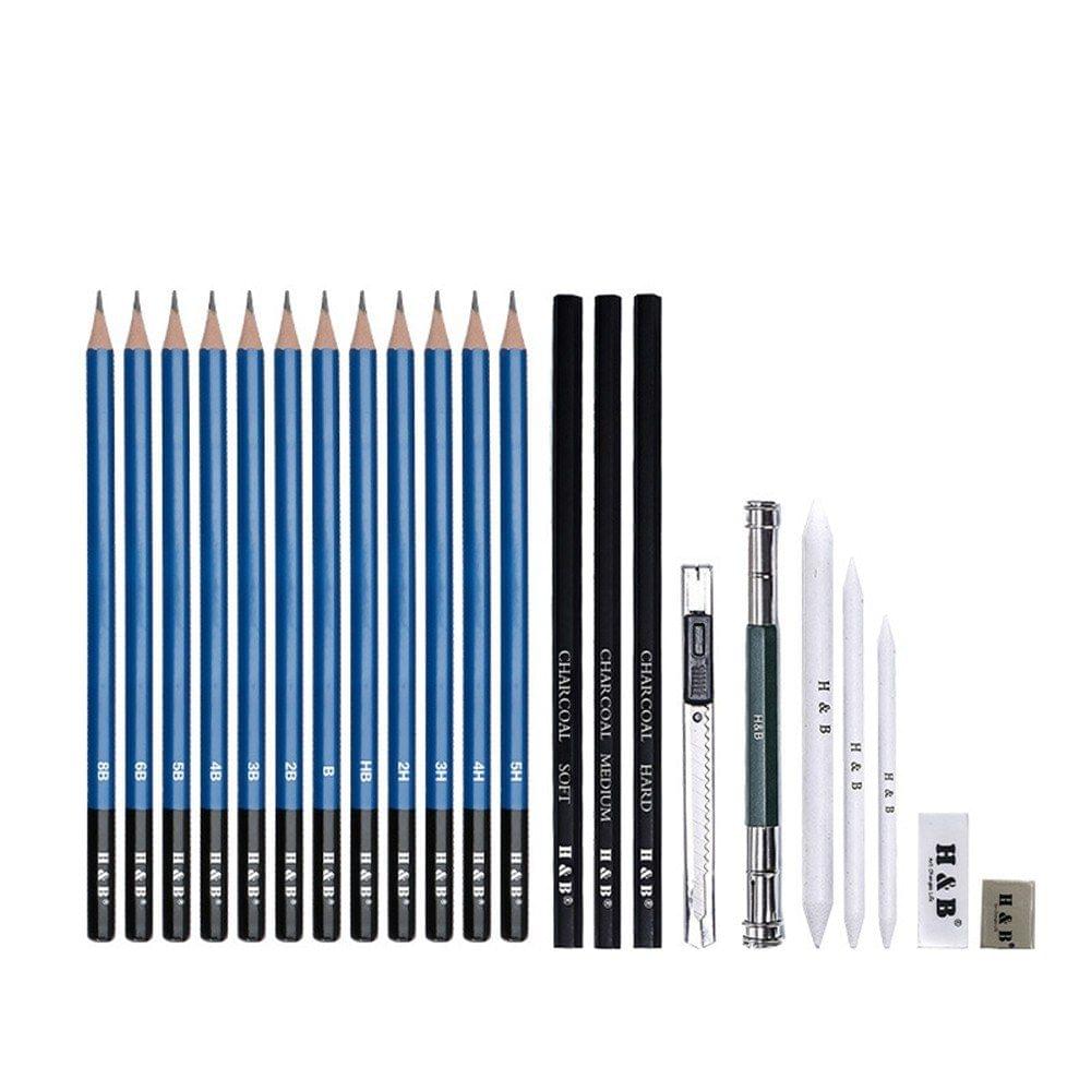 description":"This drawing kit is perfect for beginners, students and artists use. 23pcs/set, including various pencils and other useful painting tools, perfect for sketching and drawing. It can greatly meet your different using needs. Features: 23pcs/set professional drawing kit, greatly meeting your different using needs. The pencil is made of fine quality natural wood, not easy to be broken. Eco-friendly, safe, non-toxic and harmless. Comfortable to grip, easy to use, drawing smoothly. Comes with a storage case for keeping all drawing tools in organized. Perfect for drawing and sketching, suitable for beginners, students, painters, artists, etc. Specifications: Pencil body material: natural wood Carry case material: iron Quantity: 23pcs/set Package weight: 500g / 1.10lb Package size: 335 * 85 * 21mm / 13.19 * 3.35 * 0.83in Package List: 12 * Sketch Pencils(2H/3H/4H/5H/HB/B/2B/3B/4B/5B/6B/8B) 3 * Charcoal Pencils(Hard, Medium, Soft) 3 * Paper Erasable Pencils 1 * White Eraser 1 * Kneaded Charcoal Eraser 1 * Pencil Sharpener 1 * Pencil Extender 1 * Cutter