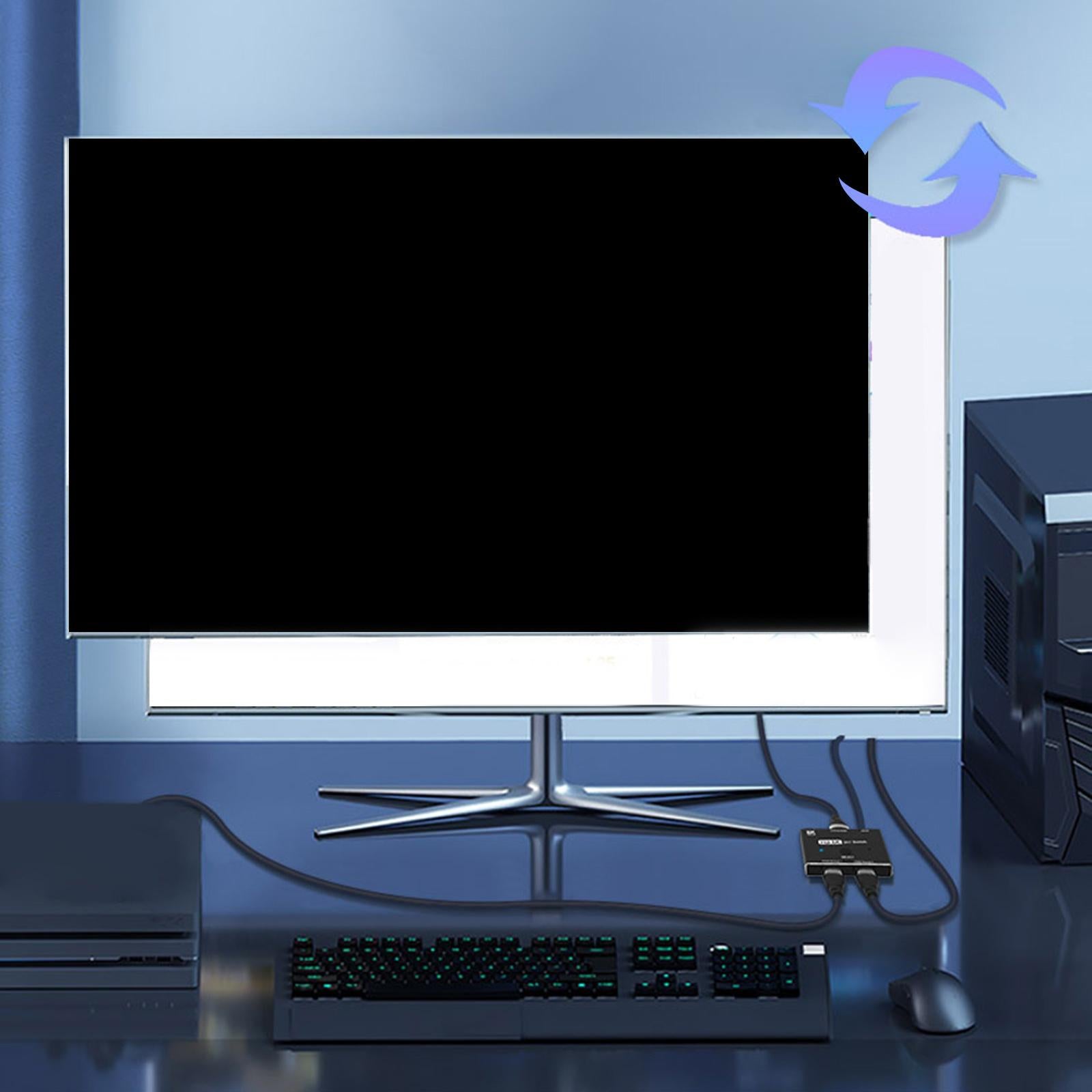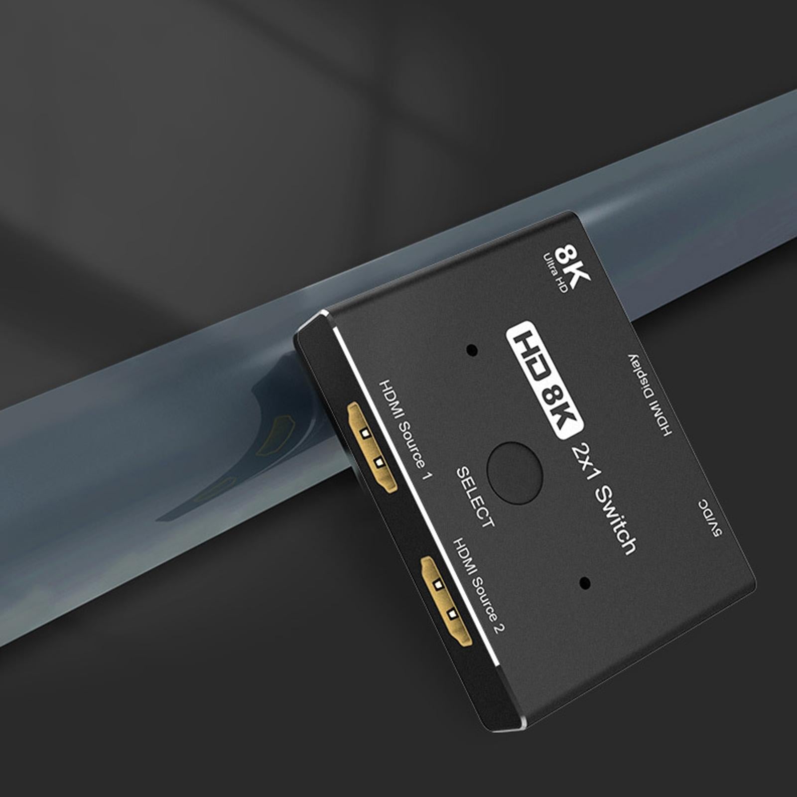8K HDMI 2 In 1 Out Switcher: You can press the "Select" button to switch the display between your two HDMI source devices, switch between entertainment and office. Only one source device can be selected to establish a connection with the output device at a time.