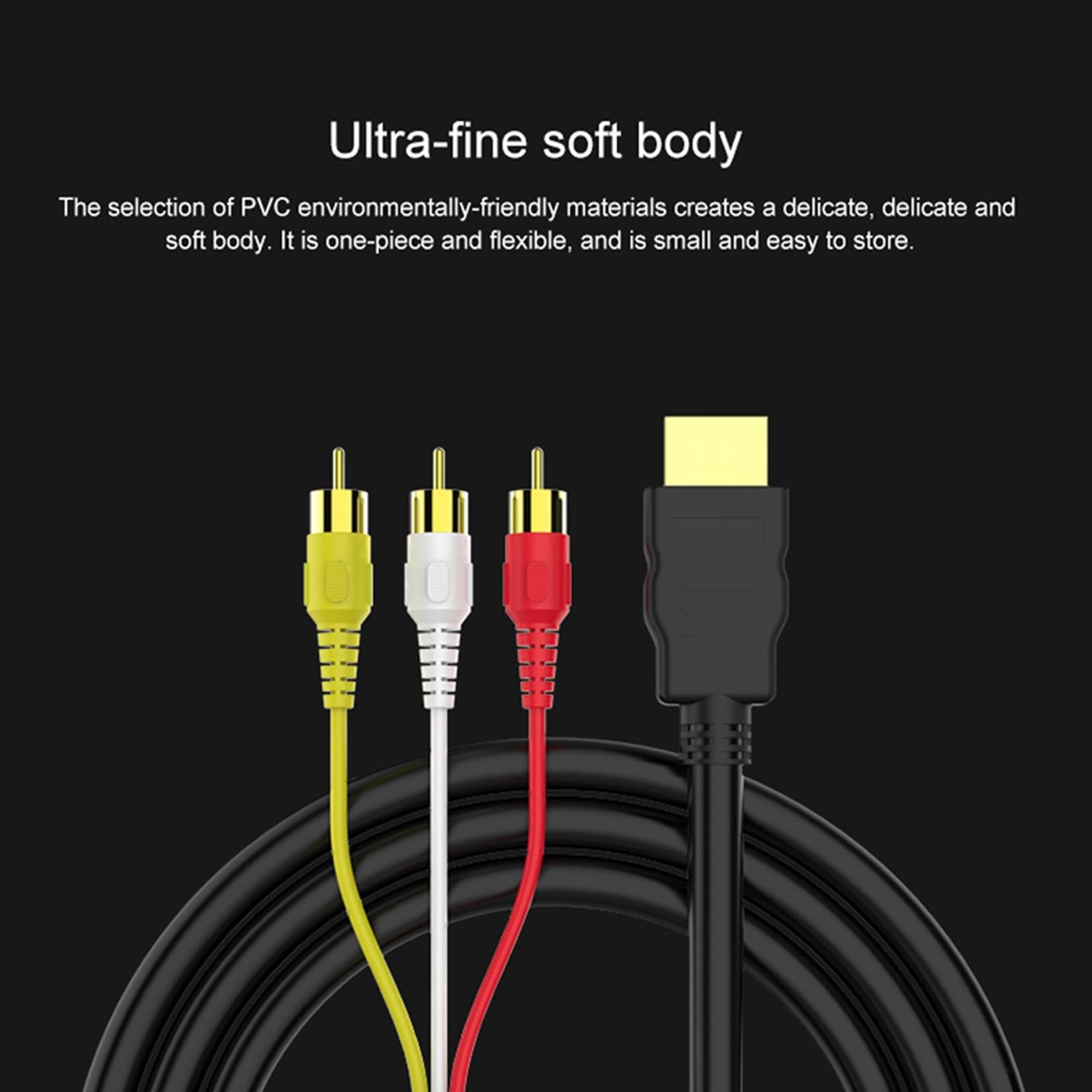 HDMI to 3RCA Converter: Male HDMI to 3RCA Adapter Cable, designed to connect and transfer signals from HDMI port to 3RCA port. Transfers uncompressed digital audio or video files in high definition.