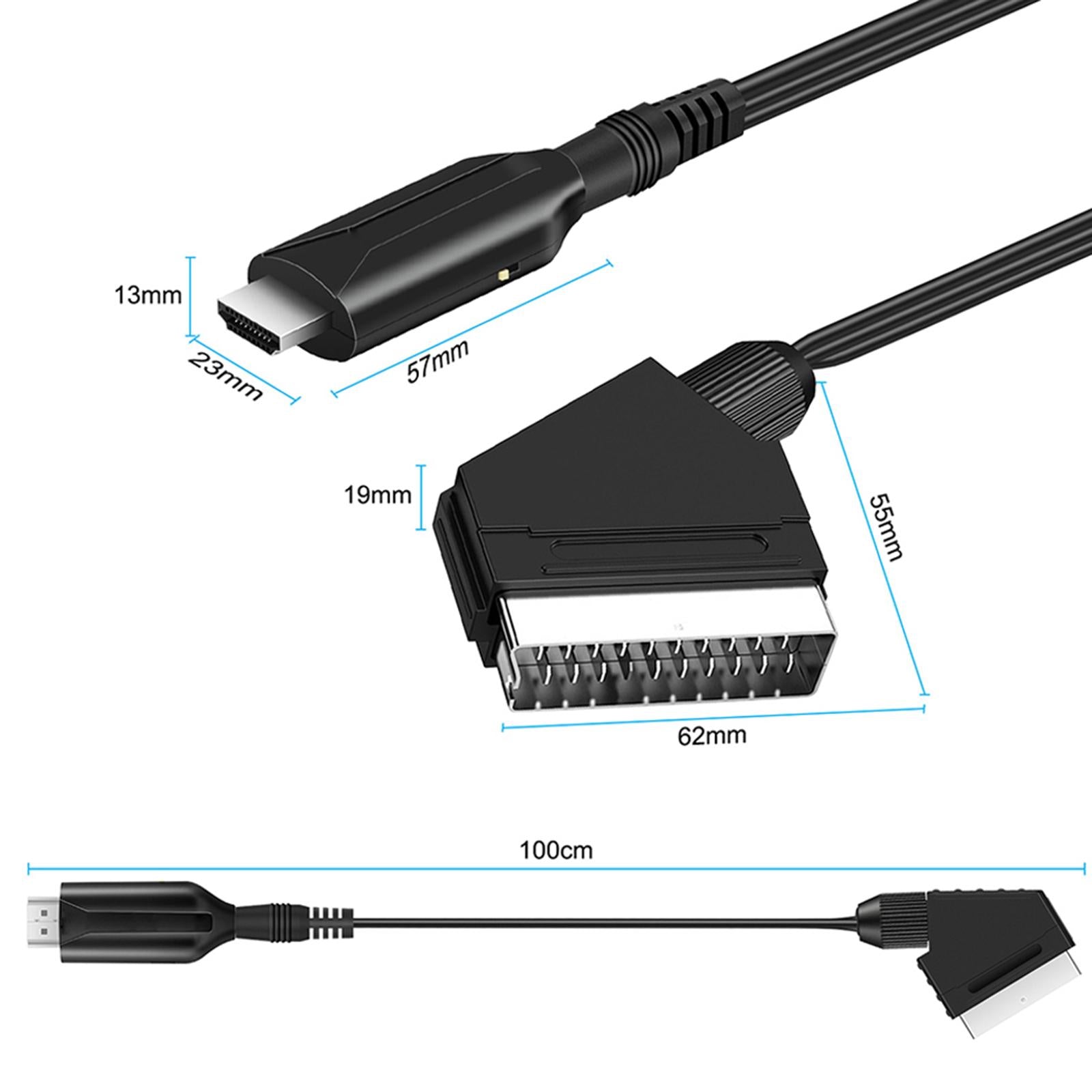 HDMI to SCART Converter: The HDMI input to Scart output converter cable converts HDMI digital audio and video signals to composite video signals and left and right stereo audio signals.