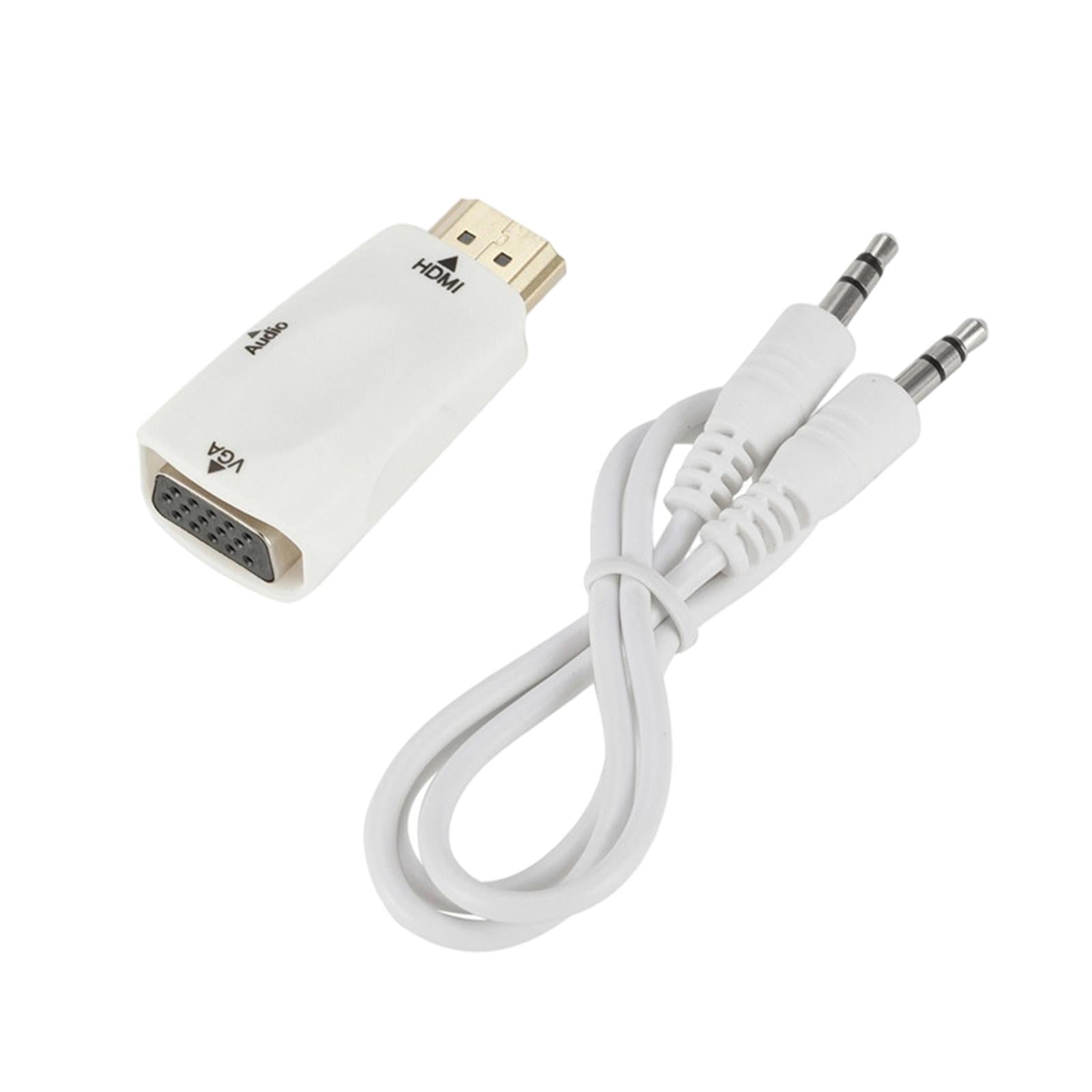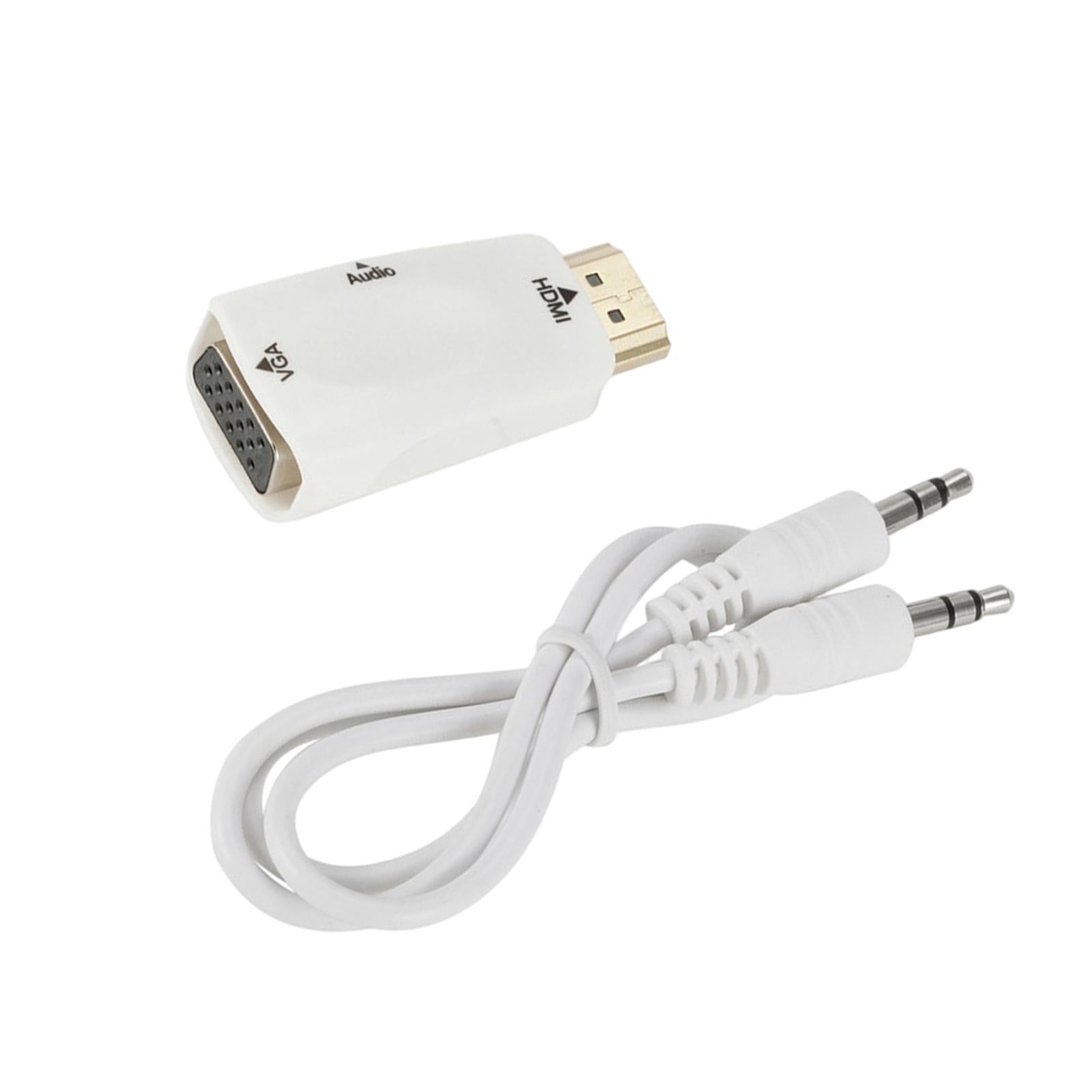 HDMI to VGA Male to Female Converter Video for Computer White with Aux Cable