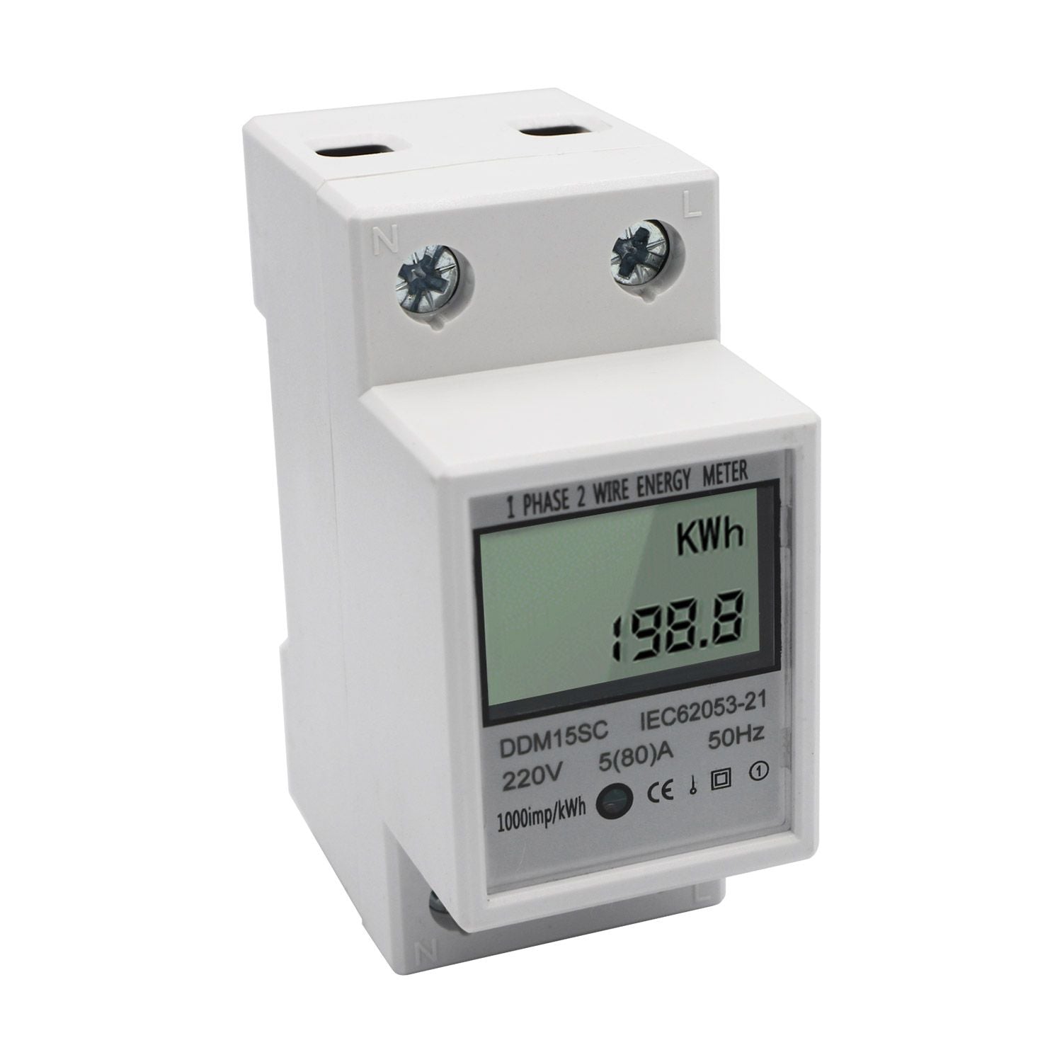 Features:Energy meter with LCD digital display takes turns showing electricity consumption voltage current and power.AC220V/50Hz voltage 5A-80A current 17000W power 1000imp/kwh pulse output and with pulse output indicator.35mm DIN Rail mounting; 17.5mm pole width; supports Up-out and Down-in/ Up-in and Down-out wiring method easy to install.Adopt microelectronics and digital processing technology to measure electric energy accurate and reliable.Large scale integrated circuits and precision SMT technology with good electromagnetic interference resistance and stable performance.Specifications:Material: PlasticModel: DDM15SCAccuracy: First GradeReference Voltage: 220V/50HzReference Current: 5-80ADisplay: LCD Digital DisplayInstallation: 35mm DIN RailPole Width: 17.5mmWiring Method: Up-out and Down-in/ Up-in and Down-outPower: 17000WEnvironment Temperature: -20?~+50?Item Size: approx. 7.8 * 3.7 * 6.6cm/ 3.1 * 1.5 * 2.6inItem Weight: 200g/ 7.1ozPackage Size: 8 * 7 * 4cm/ 3.1 * 2.8 * 1.6inPackage Weight: 300g/ 10.6ozNote:This energy meter doesn't has the reset function.Package List:1 * Energy Meter