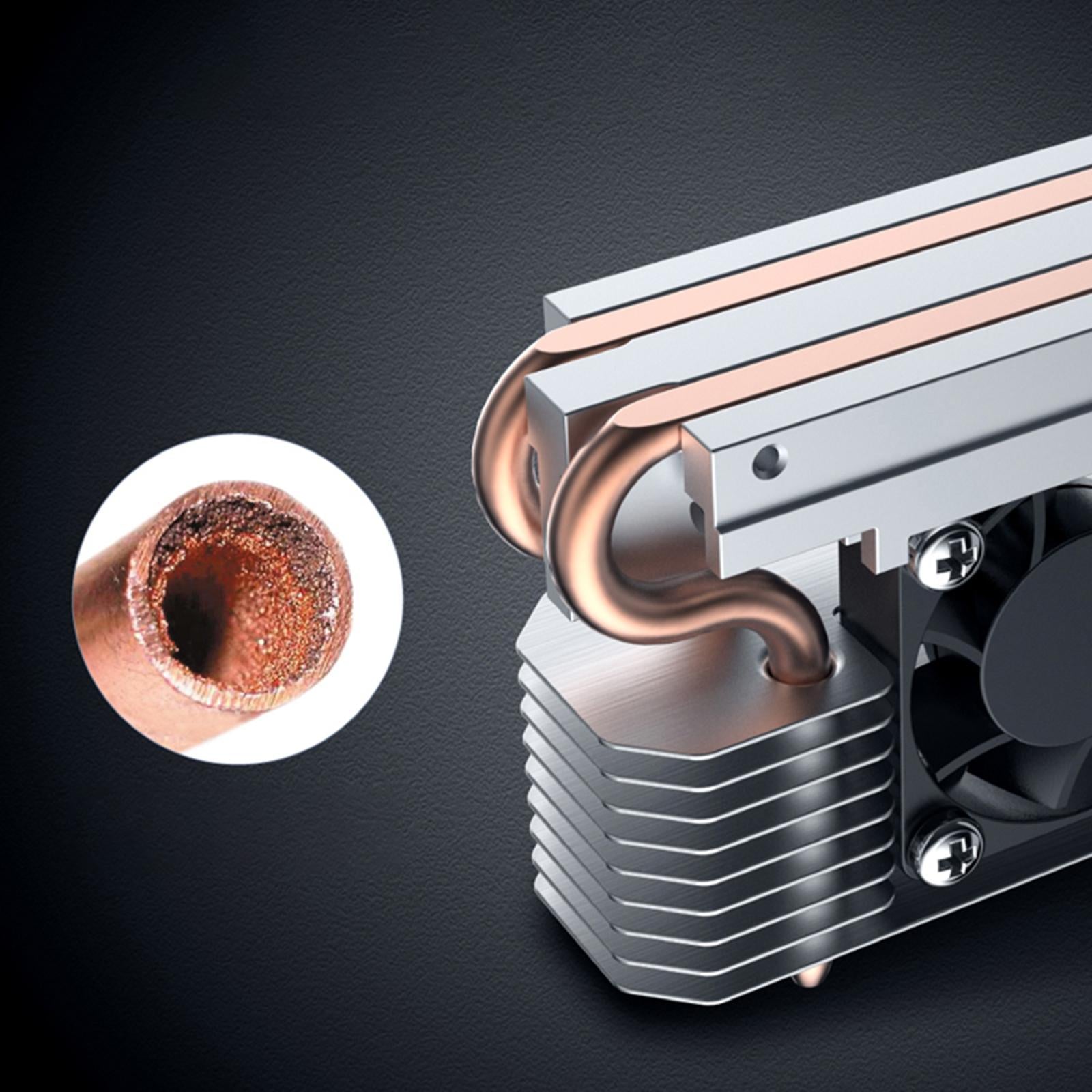 【M.2 SSD Heatsink 】: double copper heat pipe, efficient heat dissipation. The direct contact heat pipe at the bottom of the heat sink can quickly transfer the heat from the hard disk to the all aluminum fin. The pure aluminum tower fin group increases the heat dissipation area and contributes to the good heat dissipation effect of the SSD.