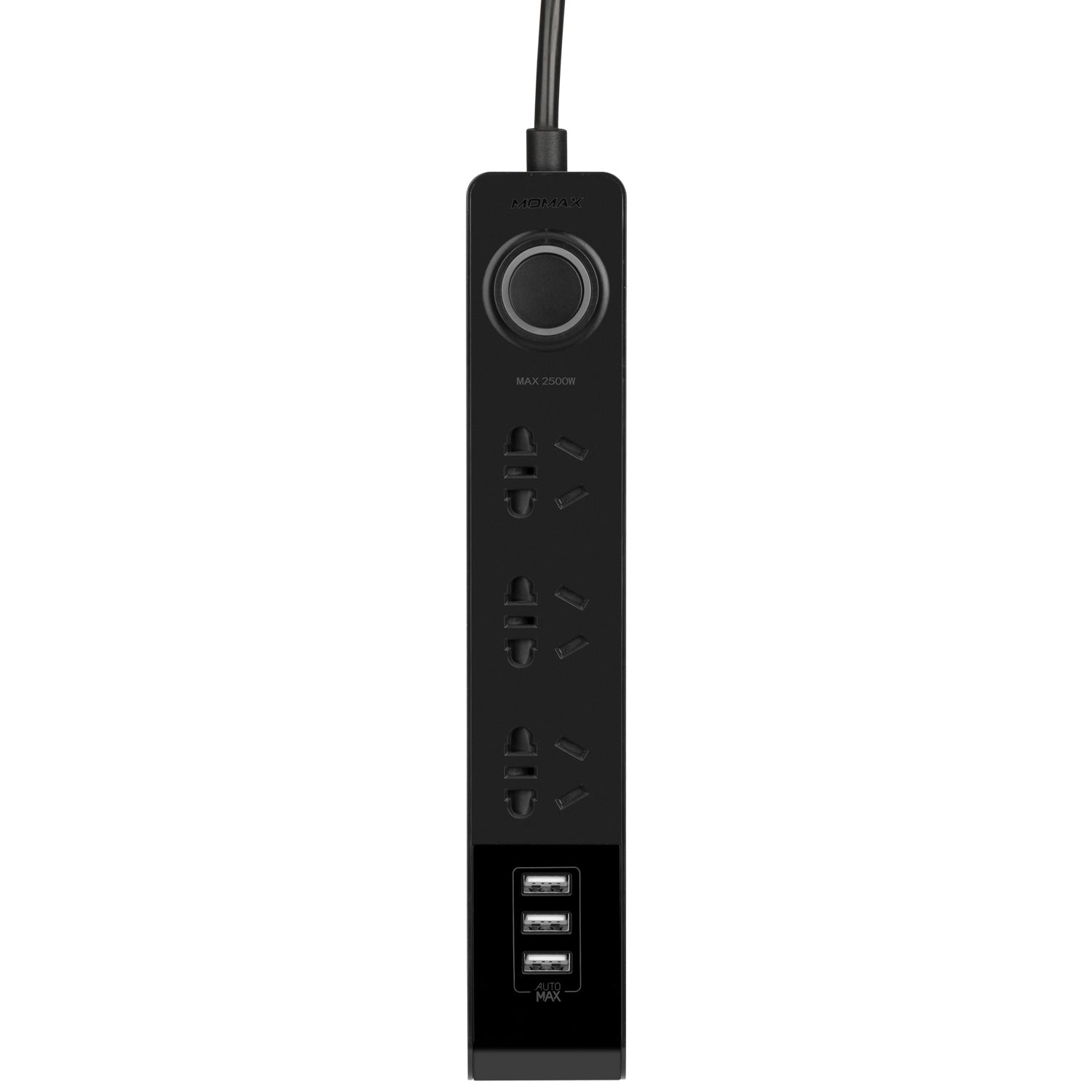 1 x MOMAX 1-Plug 2500W 3 Ground AU Outlets + 3 USB Ports Power Strip