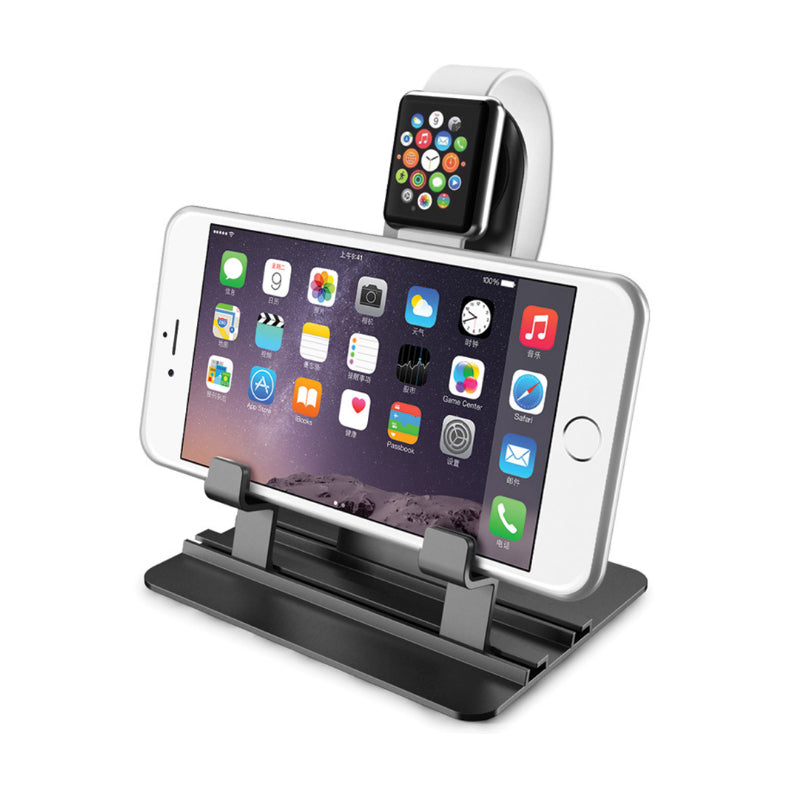 Multi functional Desktop Charging Cradle Stand Holder for Apple Watch, iPhone iPad Etc. - Black
