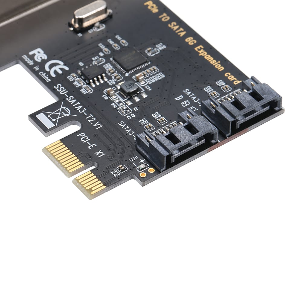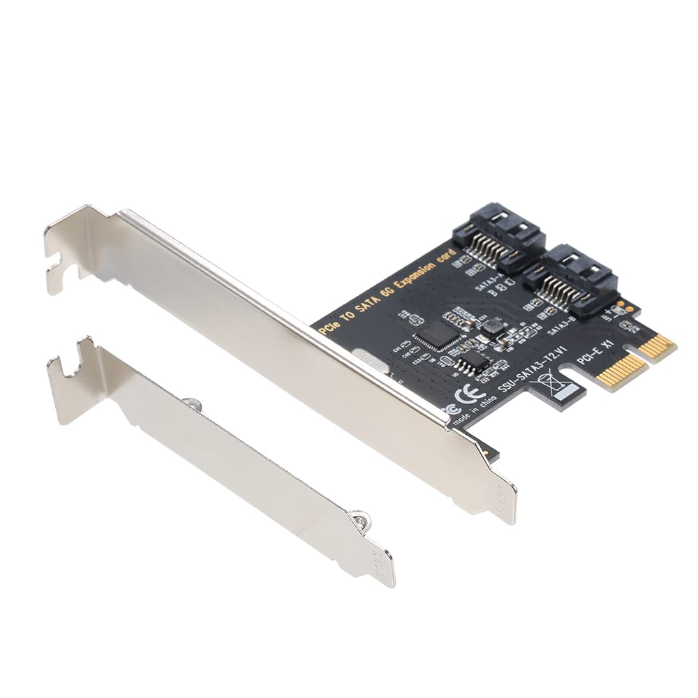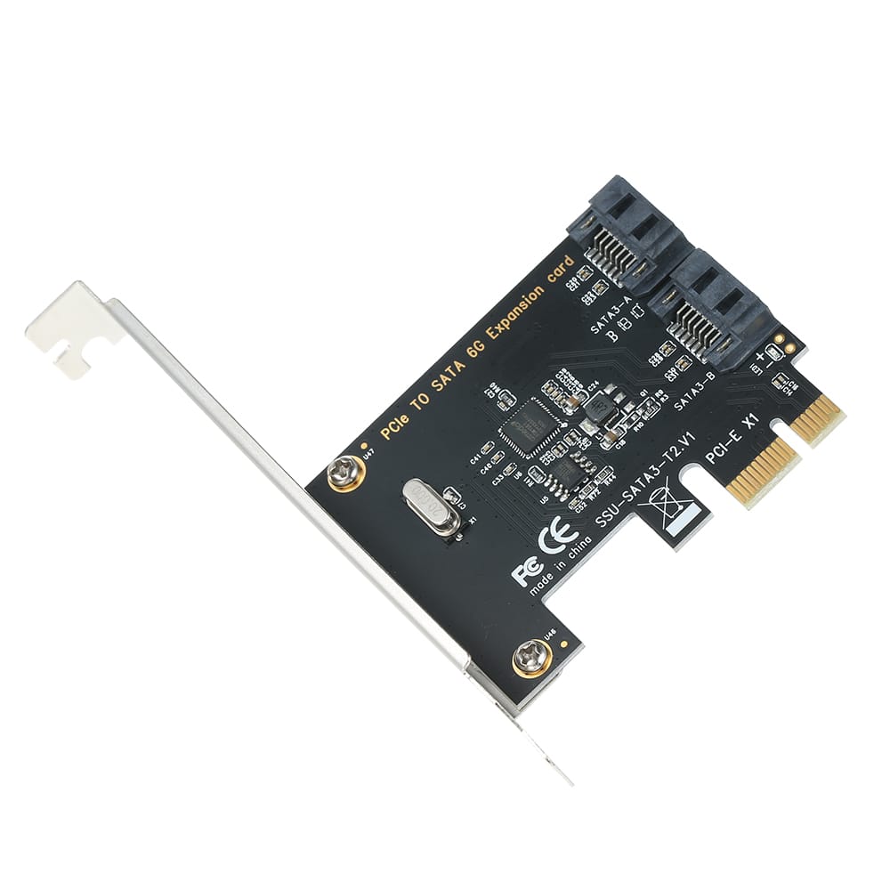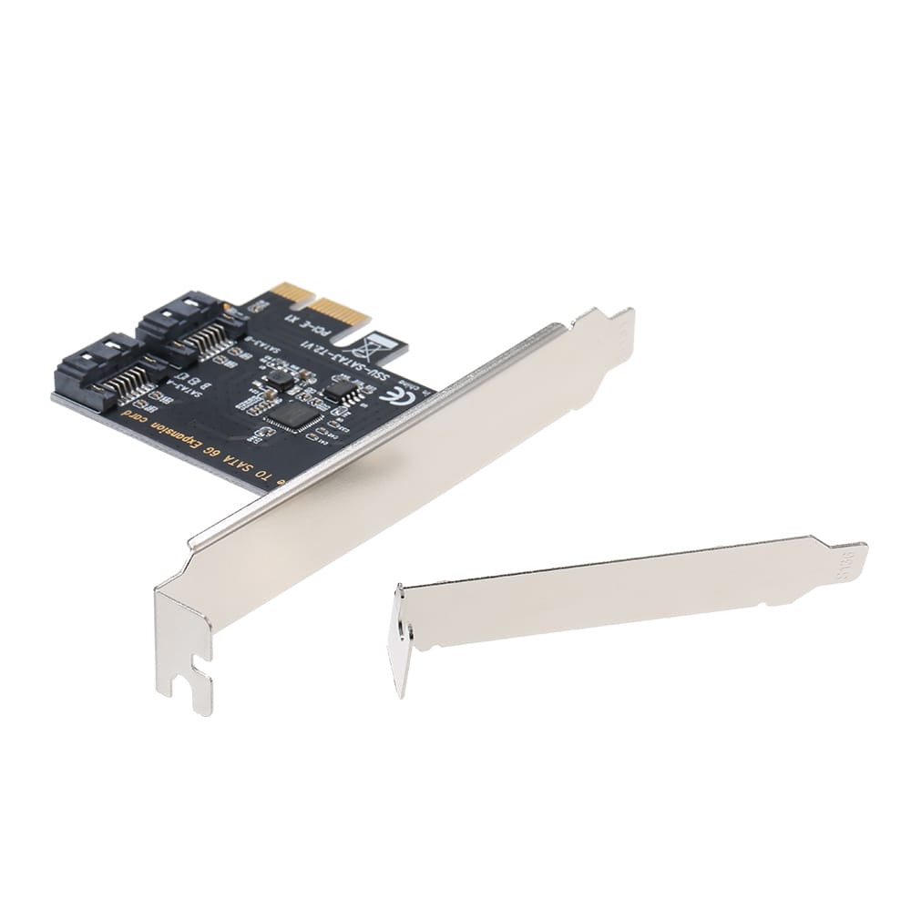 This expansion card can adapt PCIe to dual SATA3.0 interface.Features:More SATA3.0 data interface expansions more storage devices support.SATA hot-swappable plug and play.Dual SATA 3.0 interface satisfy your transmission needs.SATA? up to 6.0Gbps transmission rate downward compatible with SATA? and SATA?.Long service time. Durability in use.Specifications:Item Weight: 39g / 1.38ozPackage Weight: 39g / 1.38ozItem Size: 12 * 7 * 1.8cm / 4.72 * 2.76 * 0.71in ?L * W * H?Package Size: 12 * 7 * 1.8cm / 4.72 * 2.76 * 0.71in ?L * W * H?Package List:1 * Expansion Card1 * Holder