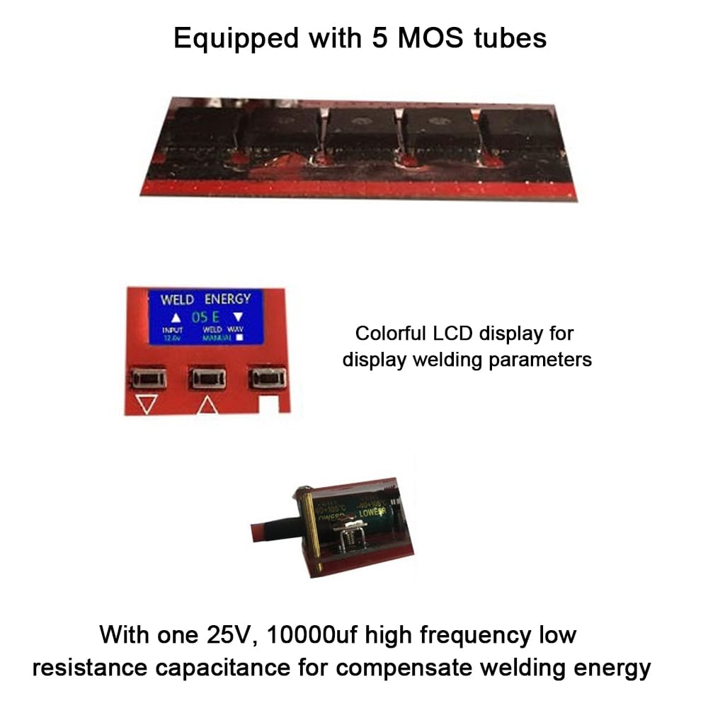 This transistor spot welding machine is equipped with 5 MOS tubes low internal resistance with large current. Colorful LCD display for display welding parameters. Support multiple welding sources two welding methods adjustable the welding thickness is up to 0.15mm. You can have a try.Features:Equipped with 5 MOS tubes low internal resistance with large current.Colorful LCD display for display welding parameters.Support multiple welding sources 12 V car battery lithium battery and supercapacitor.With one 25V 10000uf high frequency low resistance capacitance for compensate welding energy.Two welding methods automatic welding and manual welding adjustable.The controller is adopt MCU control with accurate pulse for ensuring welding quality.The welding pen and input cable uses Ushape colding pressure terminal connection convenient detachment.The plate has 2mm copper for increase overcurrent capability.10AWG multiple strands of high temperature silica gel wire with fine torsional resistance ability.And the welding thickness is up to 0.15mm.Specifications:Name: Spot Welding Tool SetItem size: 100 * 50mm / 3.94 * 1.97inItem weight: 120g / 4.23ouncePackage size: 150 * 80 * 30mm / 5.91 * 3.15 * 1.18inPackage weight: 197g / 6.95ouncePacking List:1 * Controller2 * Welding Pen2 * Power Cable2 * Terminal