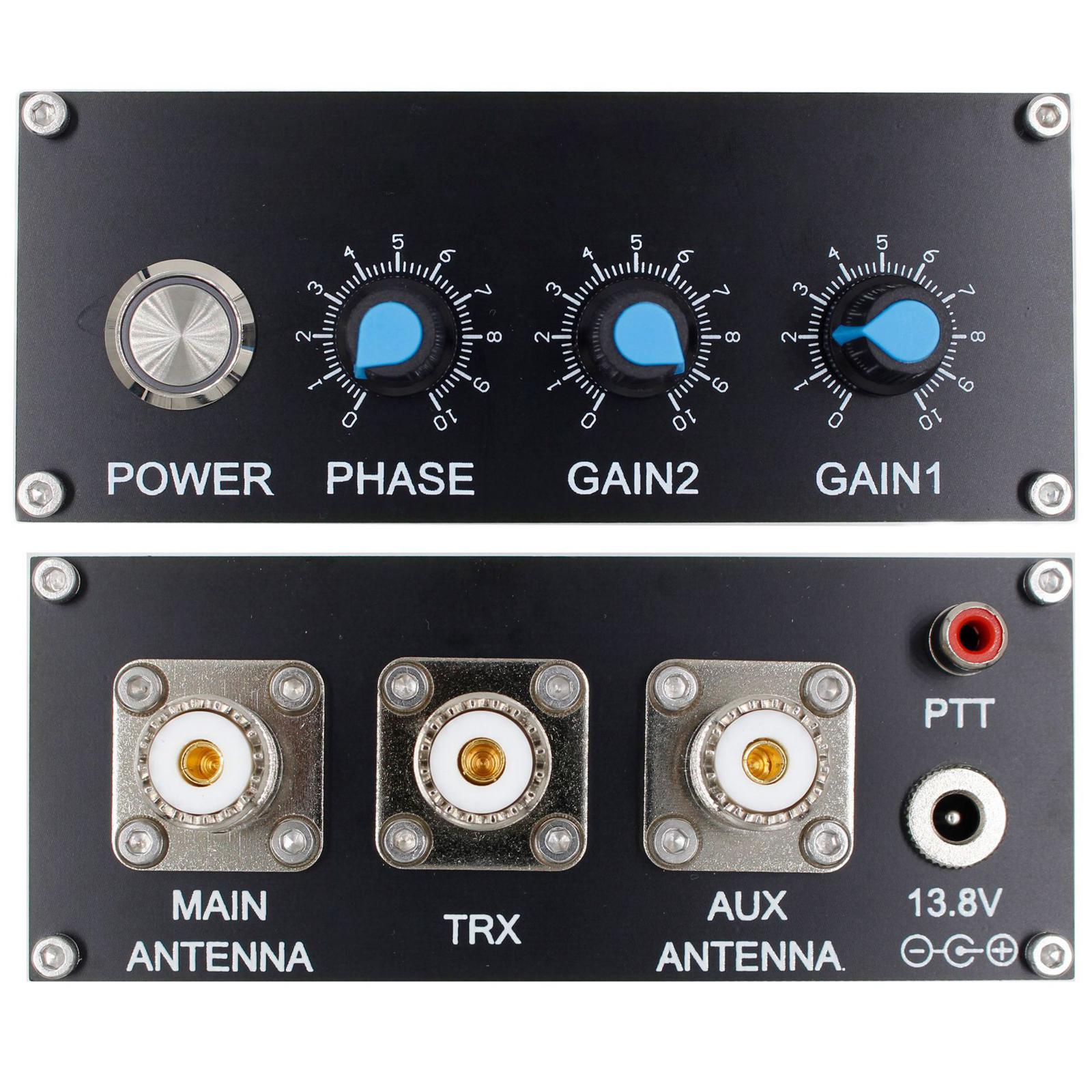 The box has a built-in PTT control that keeps the canceller connected during transmission. However, an additional auxiliary receiving antenna is required, such as a 2m antenna or a few meters of wire in a shed.