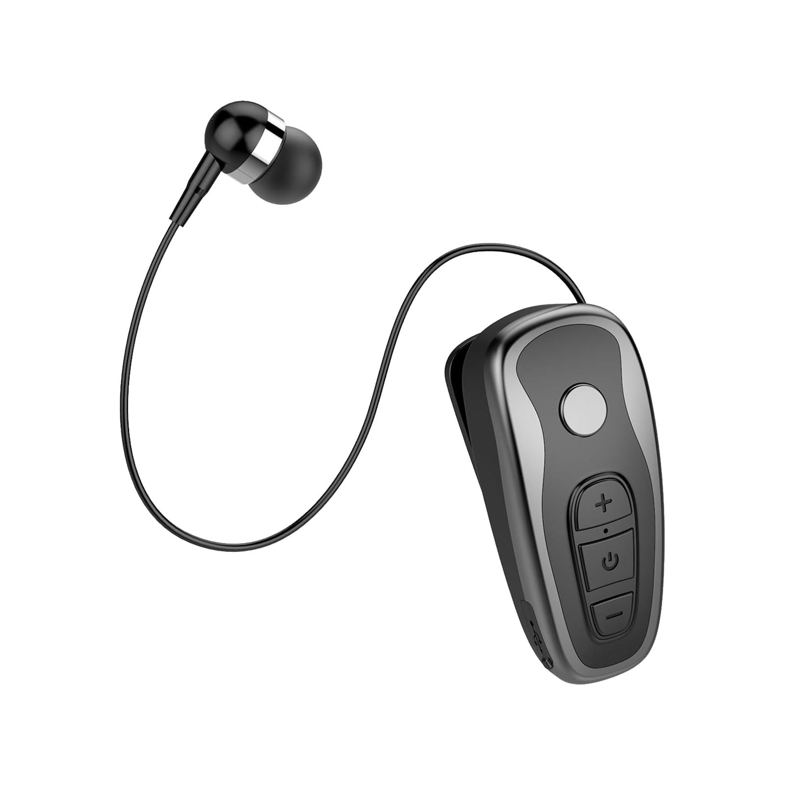 Retractable Clip On Wireless Headset with Mic for Phone Sport Running Grey