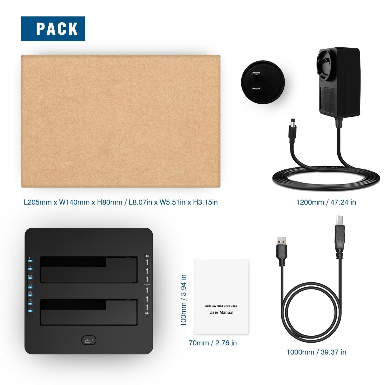 USB 3.0 to SATA Dual Bay Hard Drive Dock with SD TF Card Reader 12V/3A