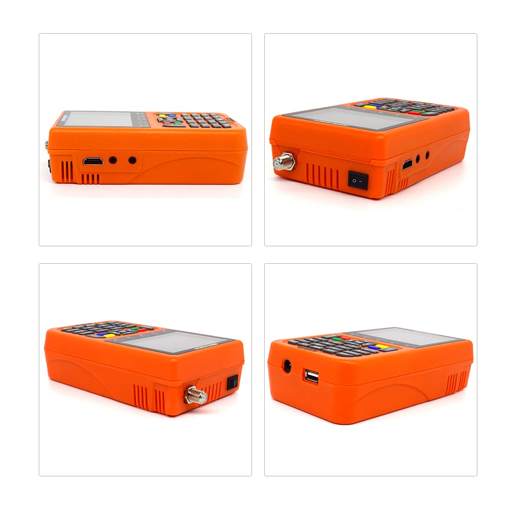Features:System Capabilities: full HD DVB-S/S2 H.265 complian fully DVB compliant live FTA digital picture and sound. PAL/NTSC: automatic PAL/NTSC conversion.Channels Number: 6000 channels TV and radio programmable with channel classification function.Favorites: 8 different favorite groups selection.OSD Language: English\German\French\Portuguese\Spanish\Italian\Russian\Turkish\Polish\Arabic \Farsi\Espanol\Deutsch.OSD Color: 3.5 inch LCD colour screen with 16-bit OSD with anti-flickering.Channel Search: Channel search in automatic manual and network search.Channel Edit: various channel editing function(favorite move lock skip delete rename find sort)Save Channel: automatic save for last channel.Easy Menu: plug and play installation with an easy to use Menu System.Soft Upgrade: software upgradeable via USB.Li-ion Battery: 3000mA lithium-ion battery normal work up to 4 hours supports battery power display.Support AV in and AV/H-MI out function. Support 13V / 18V / LOCK status panel LED display directly. Specifications:Color: Black / Orange (Optional)Plug Type: UKMaterial: ABSPanel Display: 3.5 inch LCDOutput Interface: LNB IN*1 DV OUT AV OUT AV IN USB power supplyH-M-Interface: H-Multimedia-I(up to 1080P) outputBattery: 3000mA li-ion batteryPower Supply: DC12V/1500mA (input 100V~240V 50/60Hz)SYSTEM RESOURCE:Flash Memory: 64Mb serial flashDDR3 Memory: 1Gb DDR3LNB/TUNER INPUT:Connector: F type maleFrequency Range: 950MHZ-2150MHZInput Impedance: 75?Signal Lever: -65dBm~-25dBmActive Ant Power: 13/18V DC @ 400mA MAX overload protectionLNB Switch Control: 22KHzDiSEqC: Ver 1.0/1.1/1.2DEMODULATOR:Front end: QPSK(S);QPSK 8PSK 16APSK 32APSK(S2)Modulation Range: 2Mbps~45MbpsSCPC and MCPC Capable: YesSpectral Inversion: Auto conversionItem Size: 155 * 95 * 45mm / 6.10 * 3.74 * 1.77inItem Weight: 500g / 17.64ozPackage Weight: 850g / 29.98ozPackage Size: 24 * 18 * 5.8cm / 9.45 * 7.08 * 2.28inPackage List:1 * Digital Satellite Meter1 * AV Cable 1 * Car Charger Cable1 * Adaptor 1 * Carrying Bag1 * Manual (English+German)