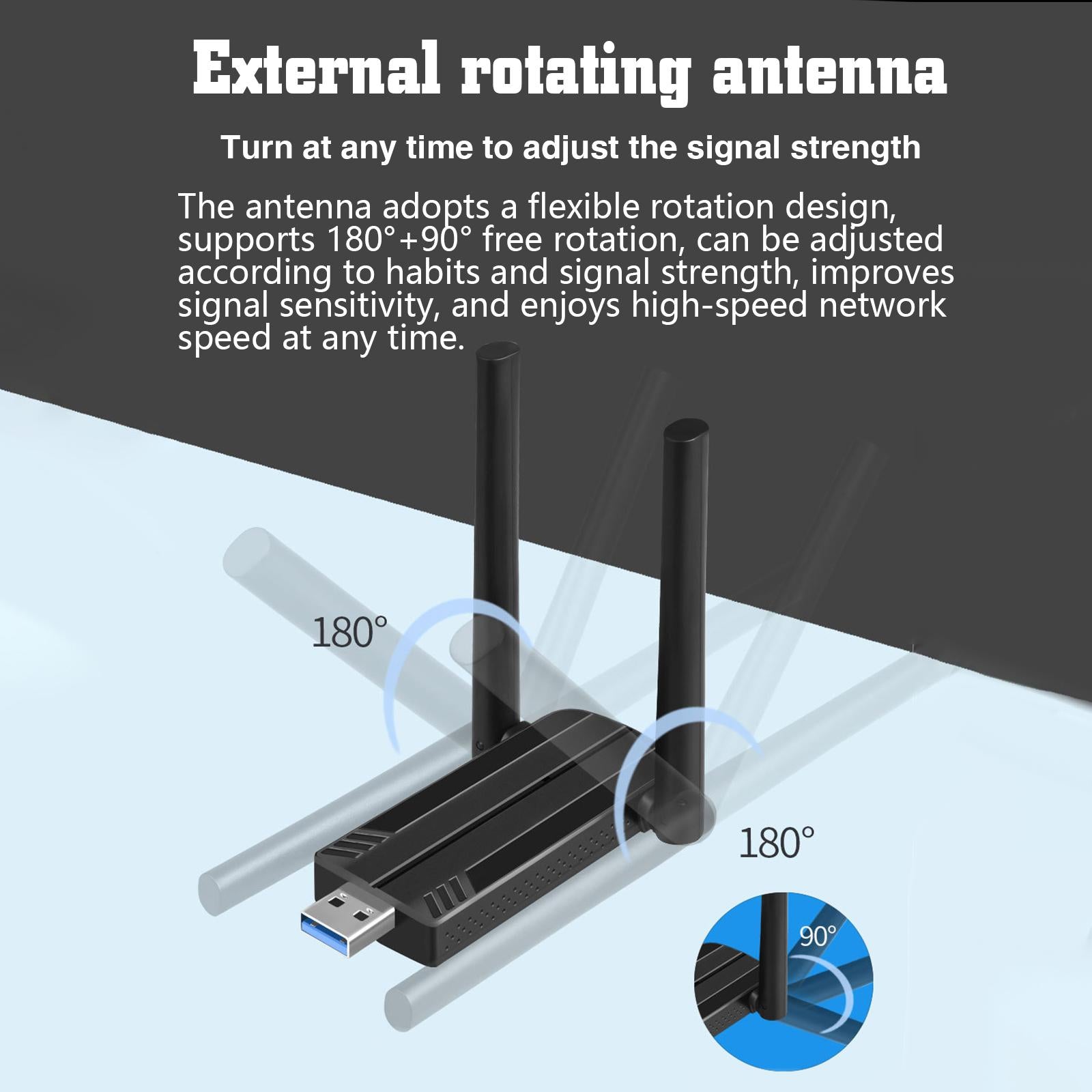 1800Mbps Dual Band WIFI Adapter: This dual band WiFi USB adapter , the wireless transmission rate is up to 1800Mbps, wireless transmission rate of 2.4G band is up to 573.5Mbps, 5G band is up to 1.2Gbps. Support WPA3, WPA2 security mechanism, support TKIP, AES, WEP encryption, can provide security guarantee for wireless network connection.