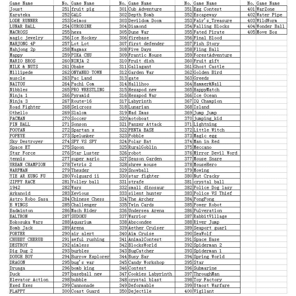description":"If you are a game lover and like classic games, the game memory card provides for you. Plug it on your computer, you can enjoy various classic games. Features: A variety of games, not repeat. Classic games bring you childhood memory. Lightweight and portable. Plug and play, easy to use. You can choose which you want according to game list. Specifications: Material: ABS Game Quantity: 400 in 1, 500 in 1, 143 in 1 (optional) Package Weight: 50g / 1.76oz Package Size: 11 * 6.3 * 1.5cm / 4.33 * 2.48 * 0.59in Package List: 1 * Game Card