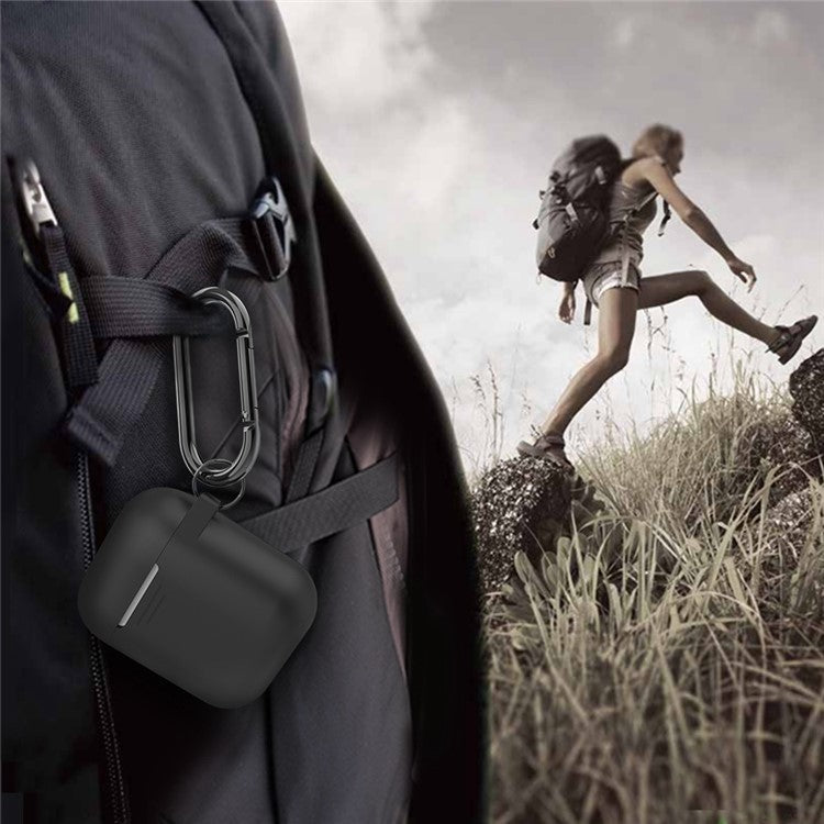 AHASTYLE PT06-3 for Apple AirPods with Charging Case (2016) / (2019) / AirPods with Wireless Charging Case (2019) Earbud Silicone Case Shockproof Earphone Cover with Carabiner - Black