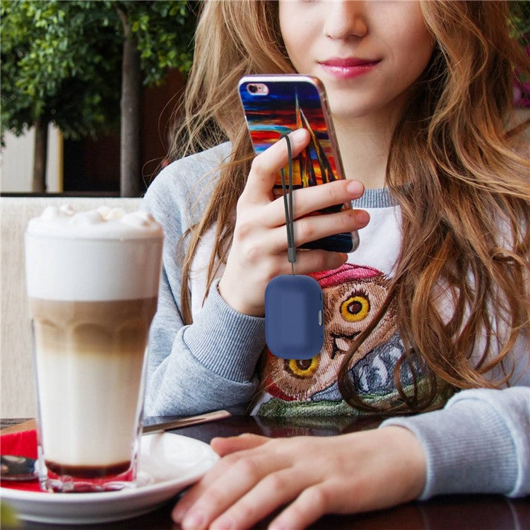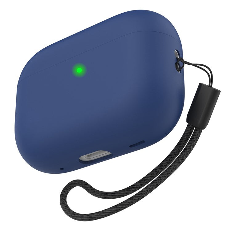 AHASTYLE WE12 Silicone Case for Apple AirPods Pro 2, Two-Piece Design Earbud Earphone Drop-proof Cover with Hand Strap - Midnight Blue