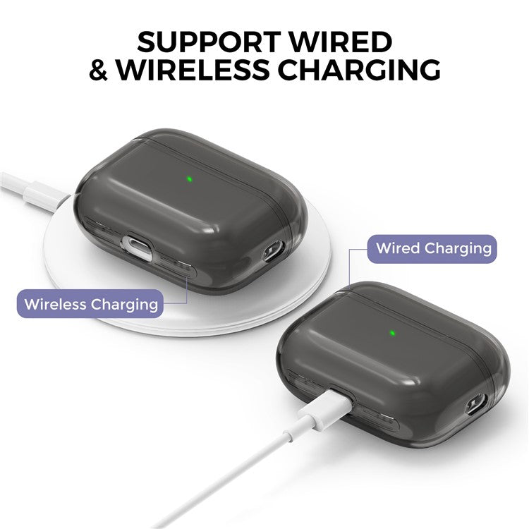 AHASTYLE WG94 For Apple AirPods Pro 2 Transparent TPU Earphone Case Bluetooth Earbud Charging Case Anti-scratch Cover with Hand Strap - Transparent Grey